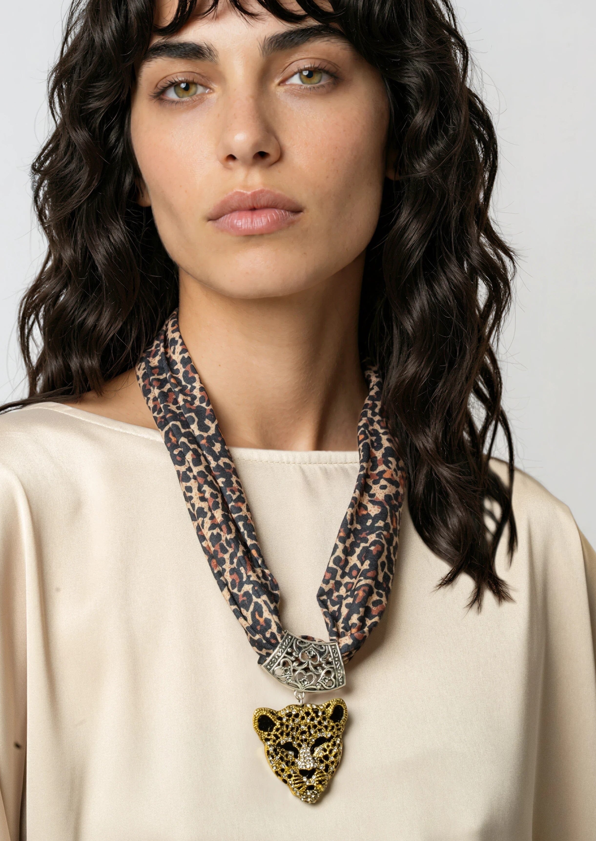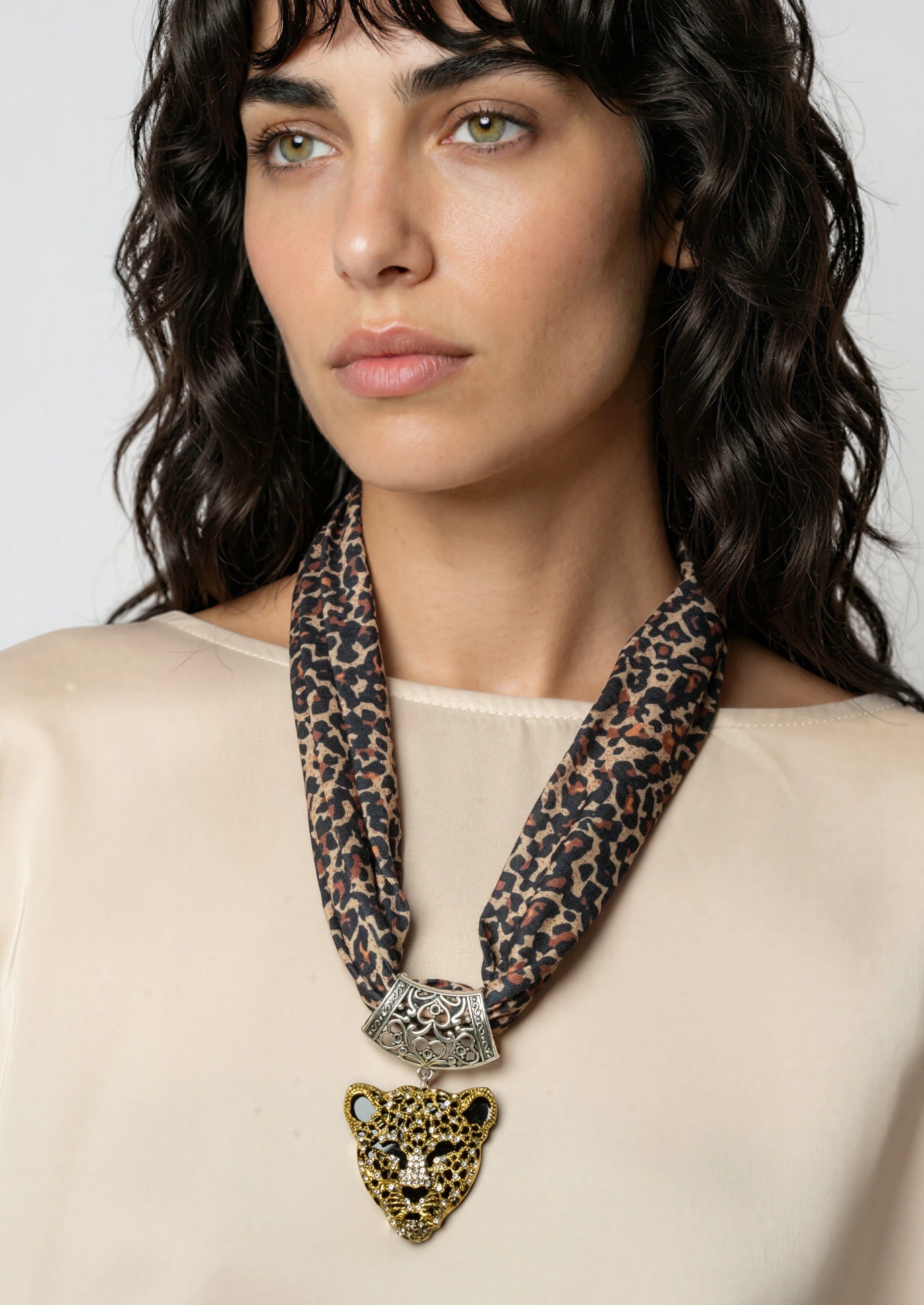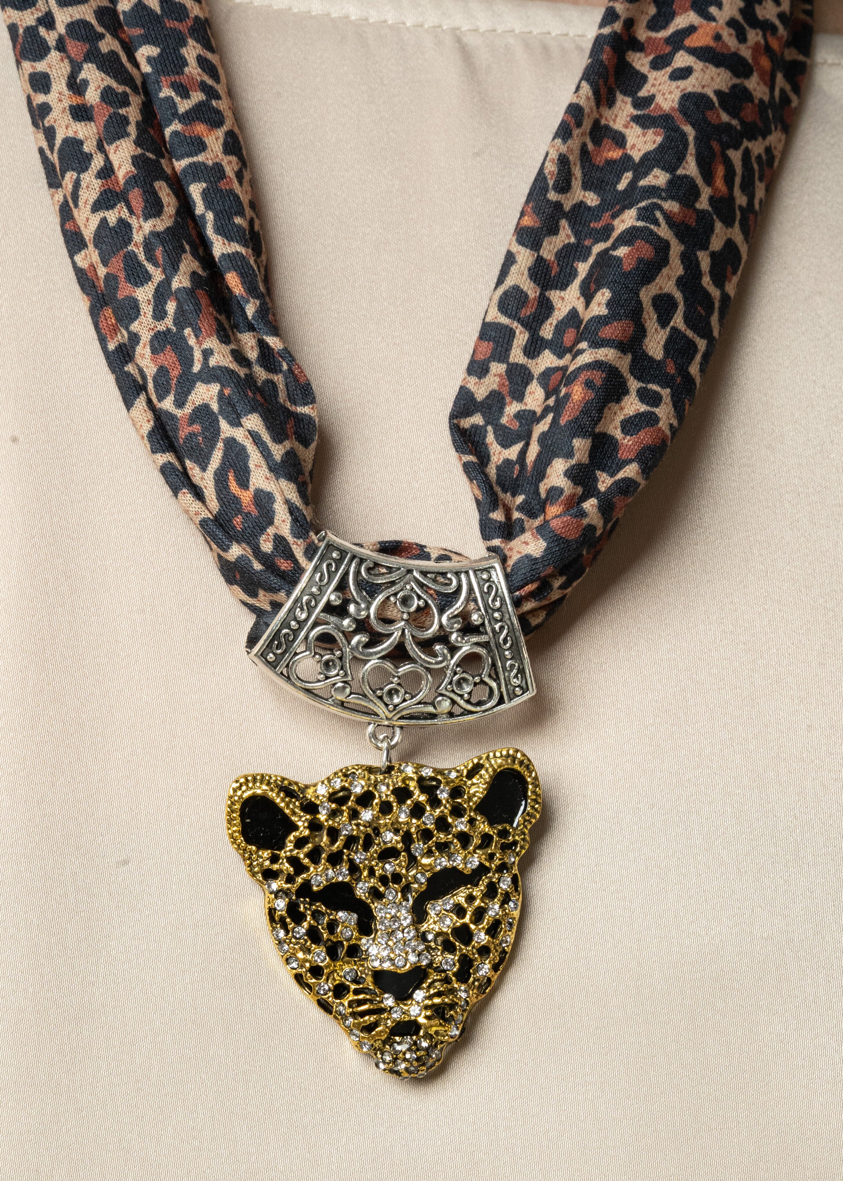 - Leopard print scarf necklace with bold statement pendant