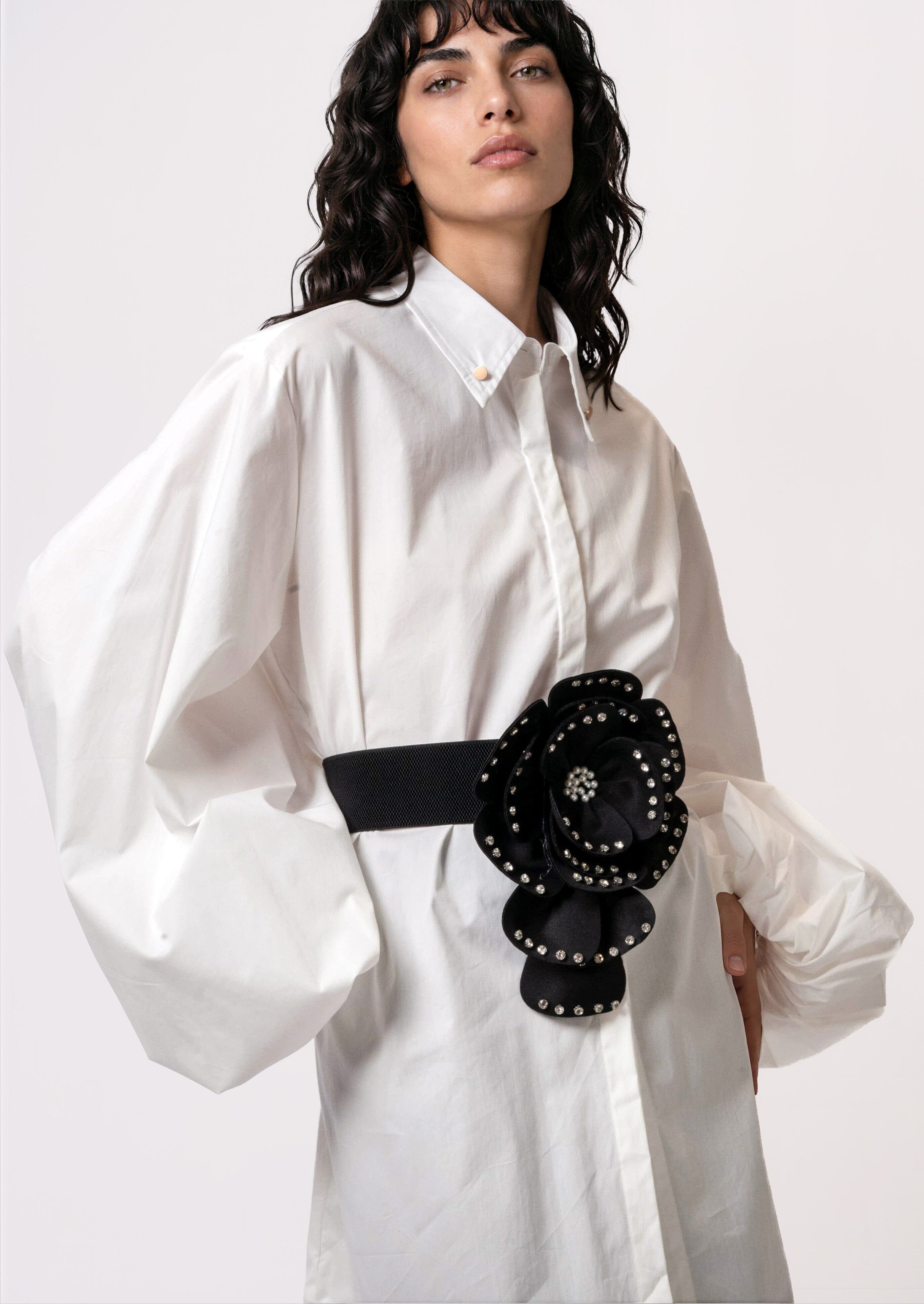 • Styling tips: Cinch it over a floor-length satin slip dress for an instant editorial look; layer over an oversized blazer with wide-leg trousers for a power-dressing moment with edge; wear over a fitted black turtleneck and leather pants to let the floral detail carry the outfit.