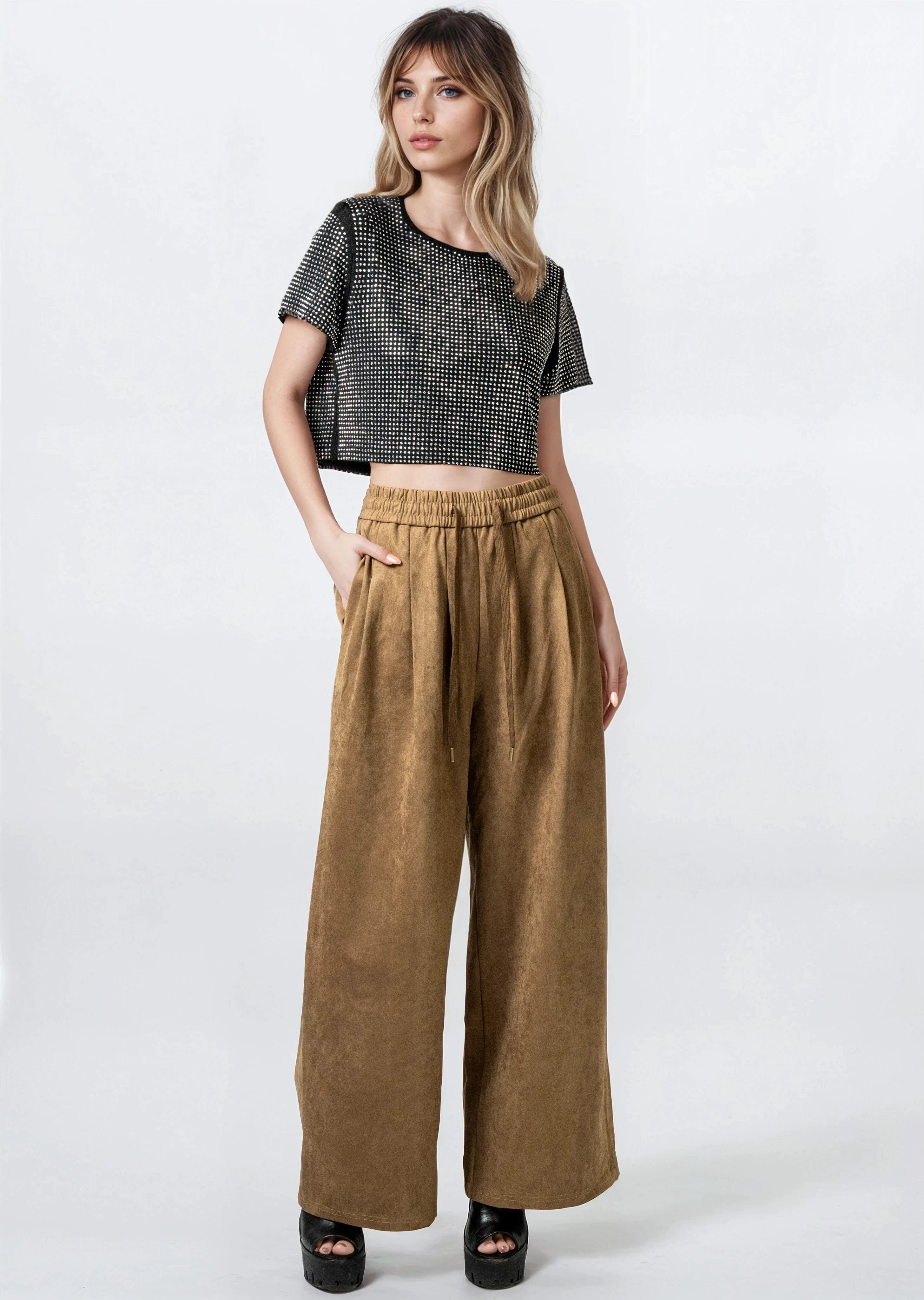 Faux Suede Drawstring Trouser