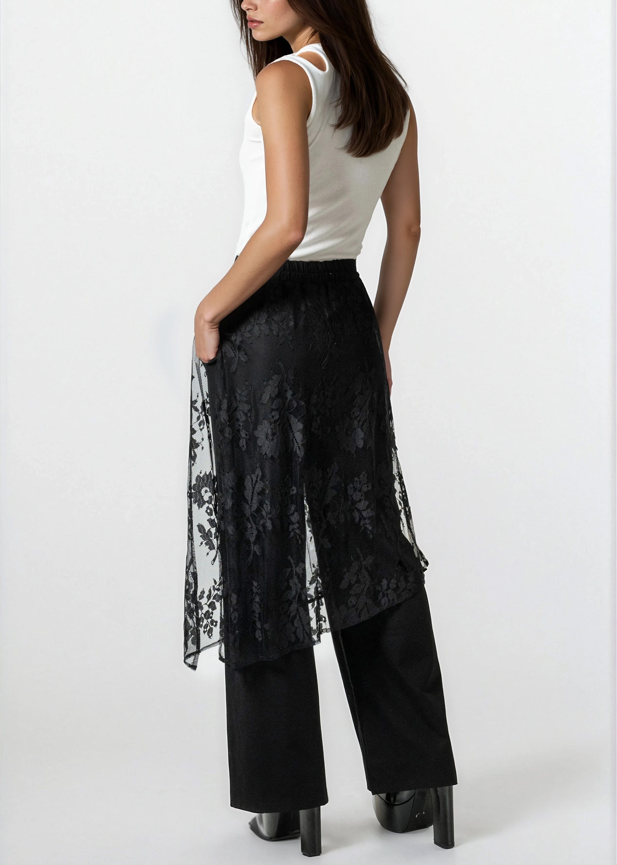 - Asymmetrical wrap-style skirt panel with raw attitude