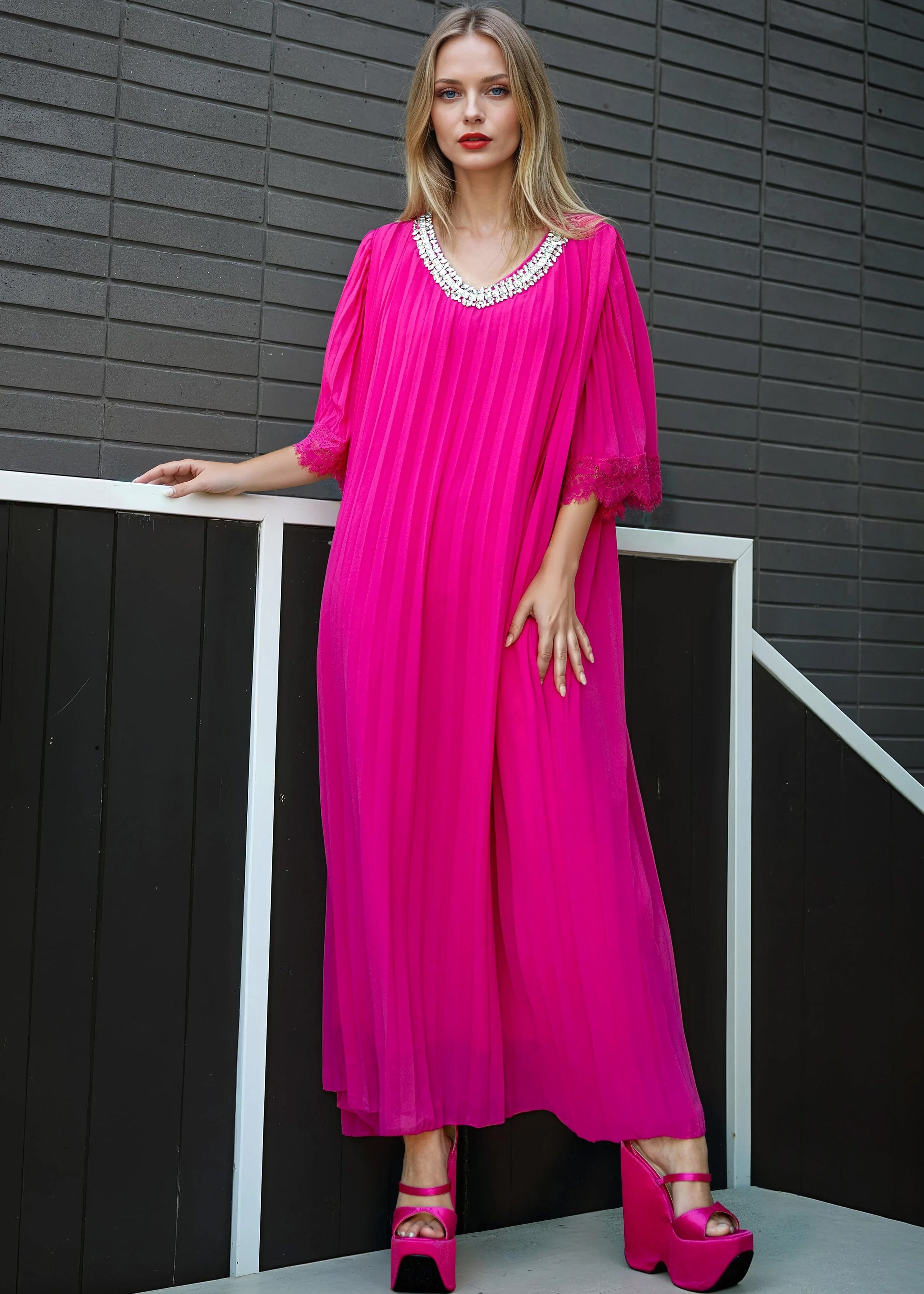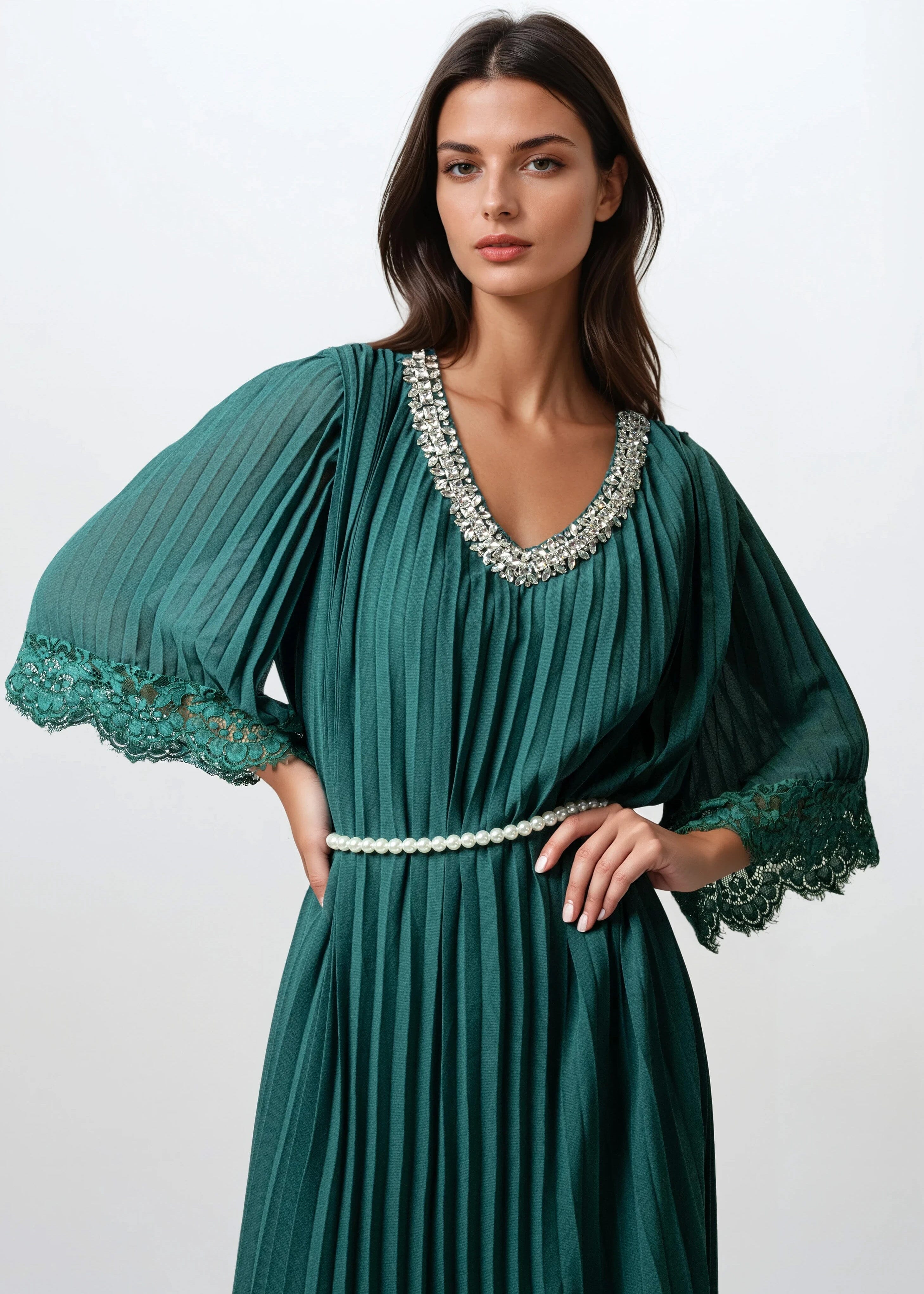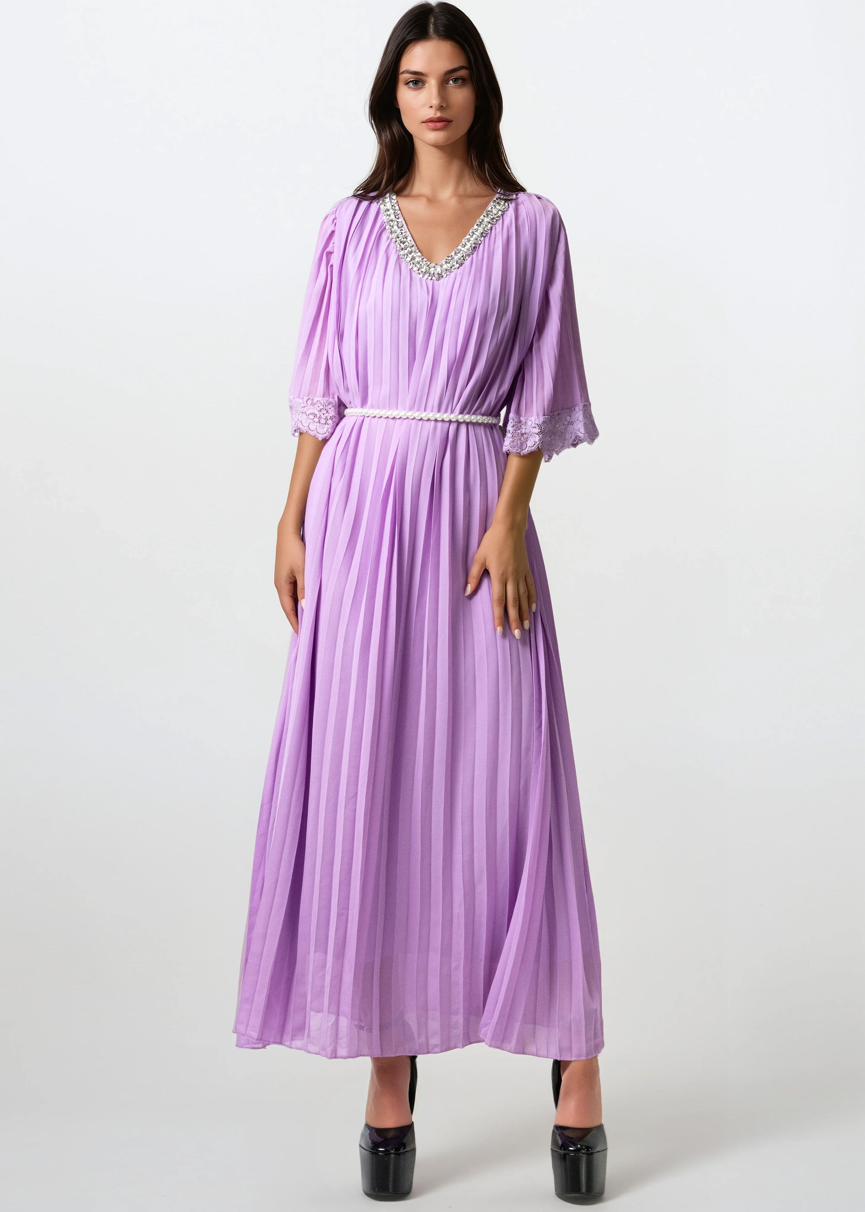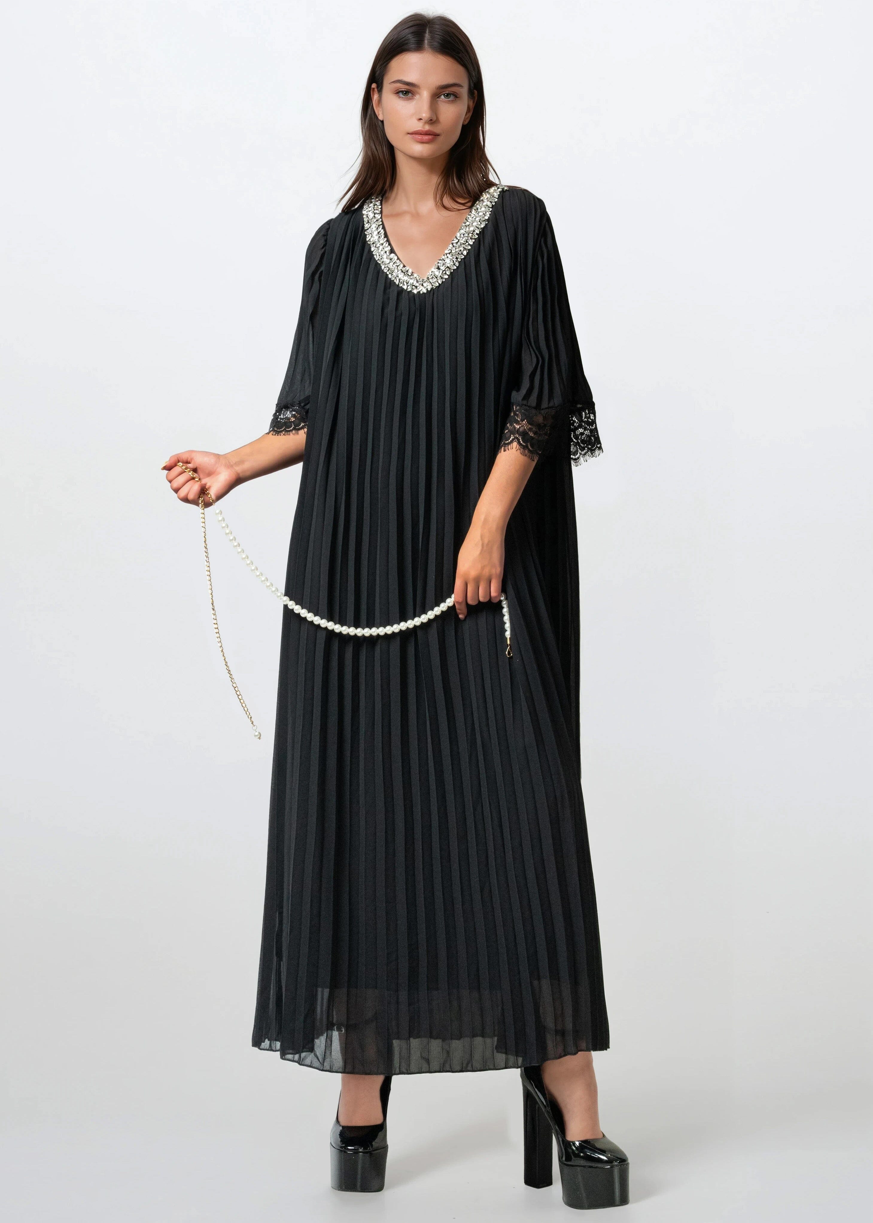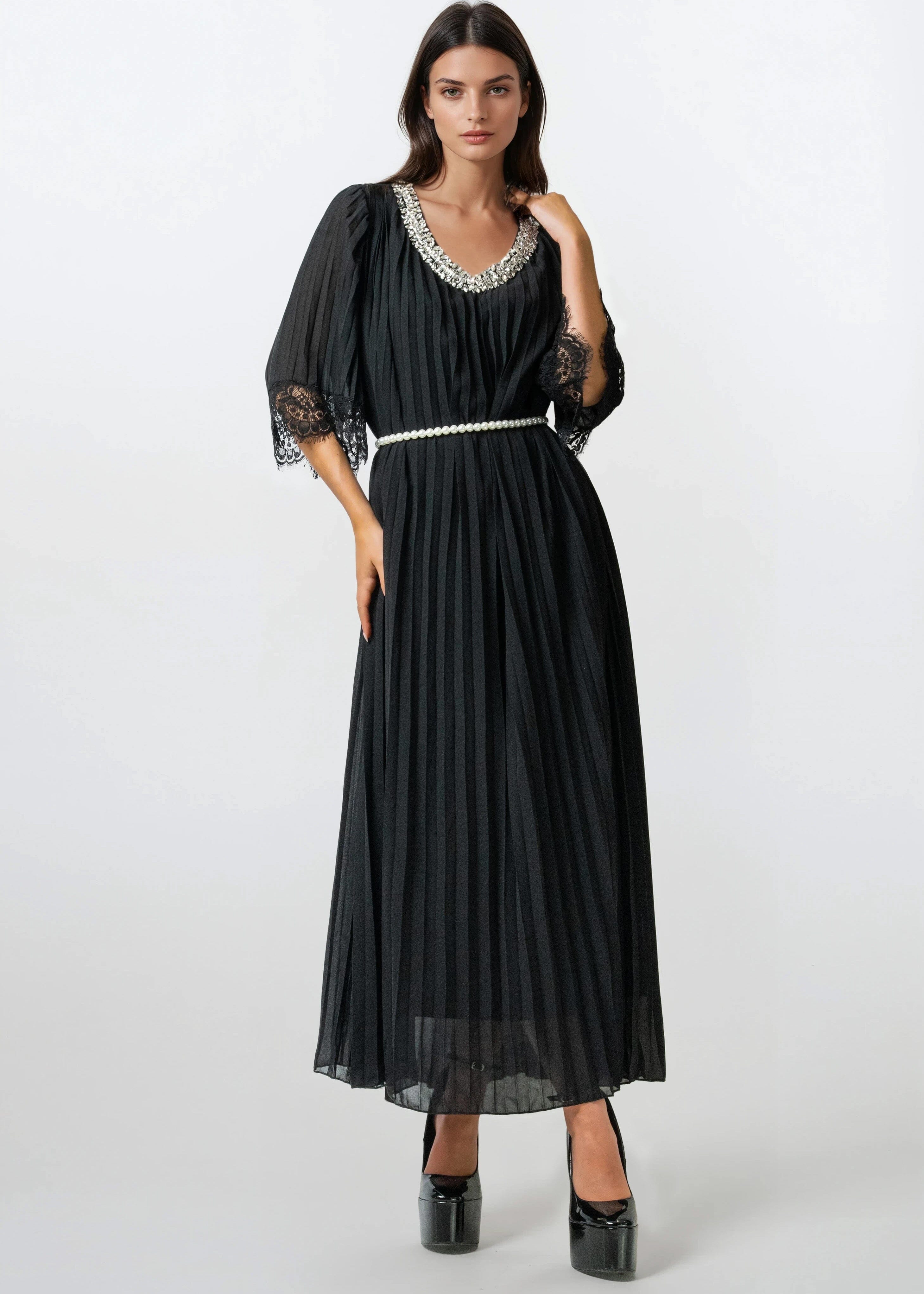 Pleated Embellished Maxi Dress