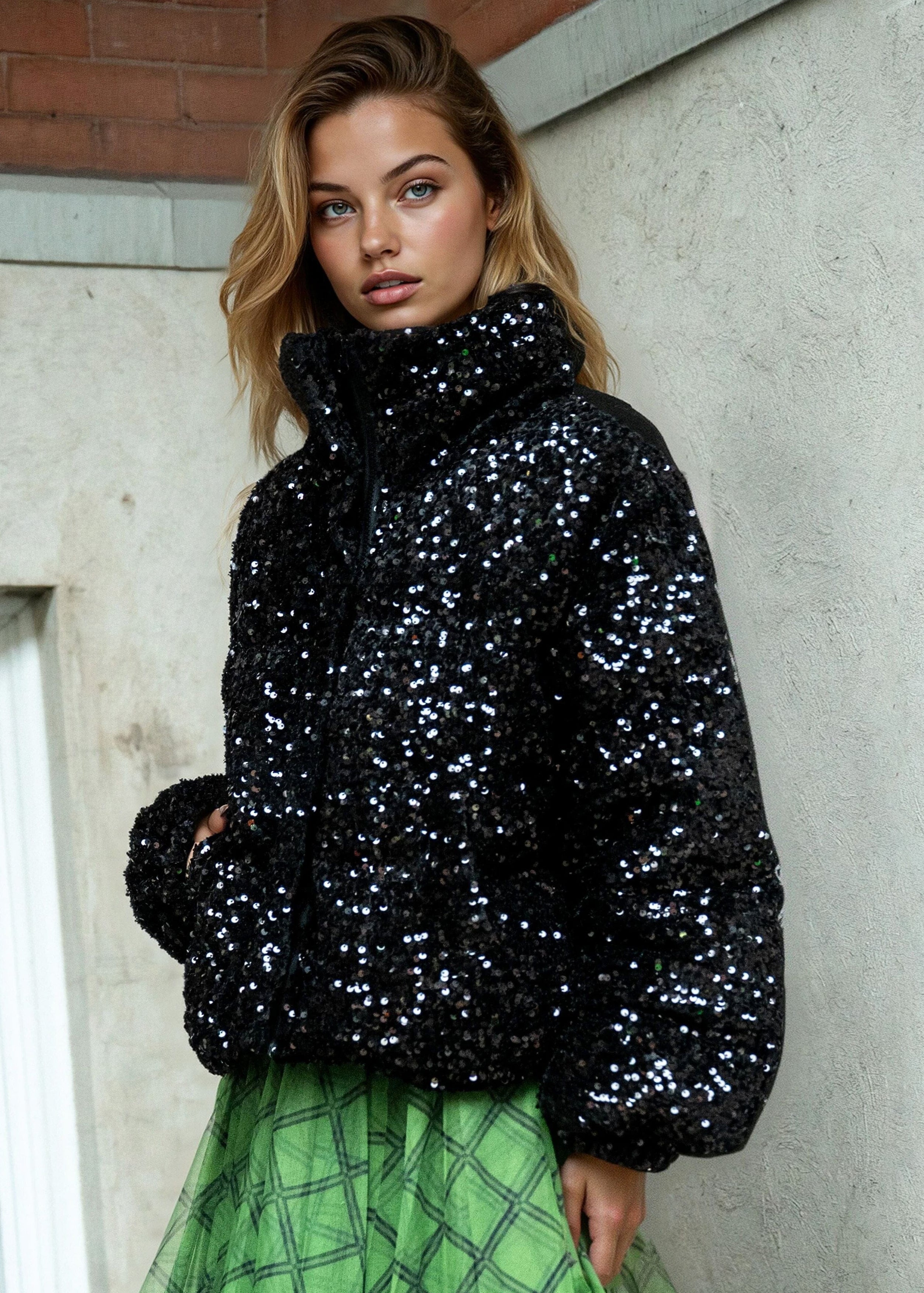 - Plush puffer silhouette—warmth meets nightclub energy