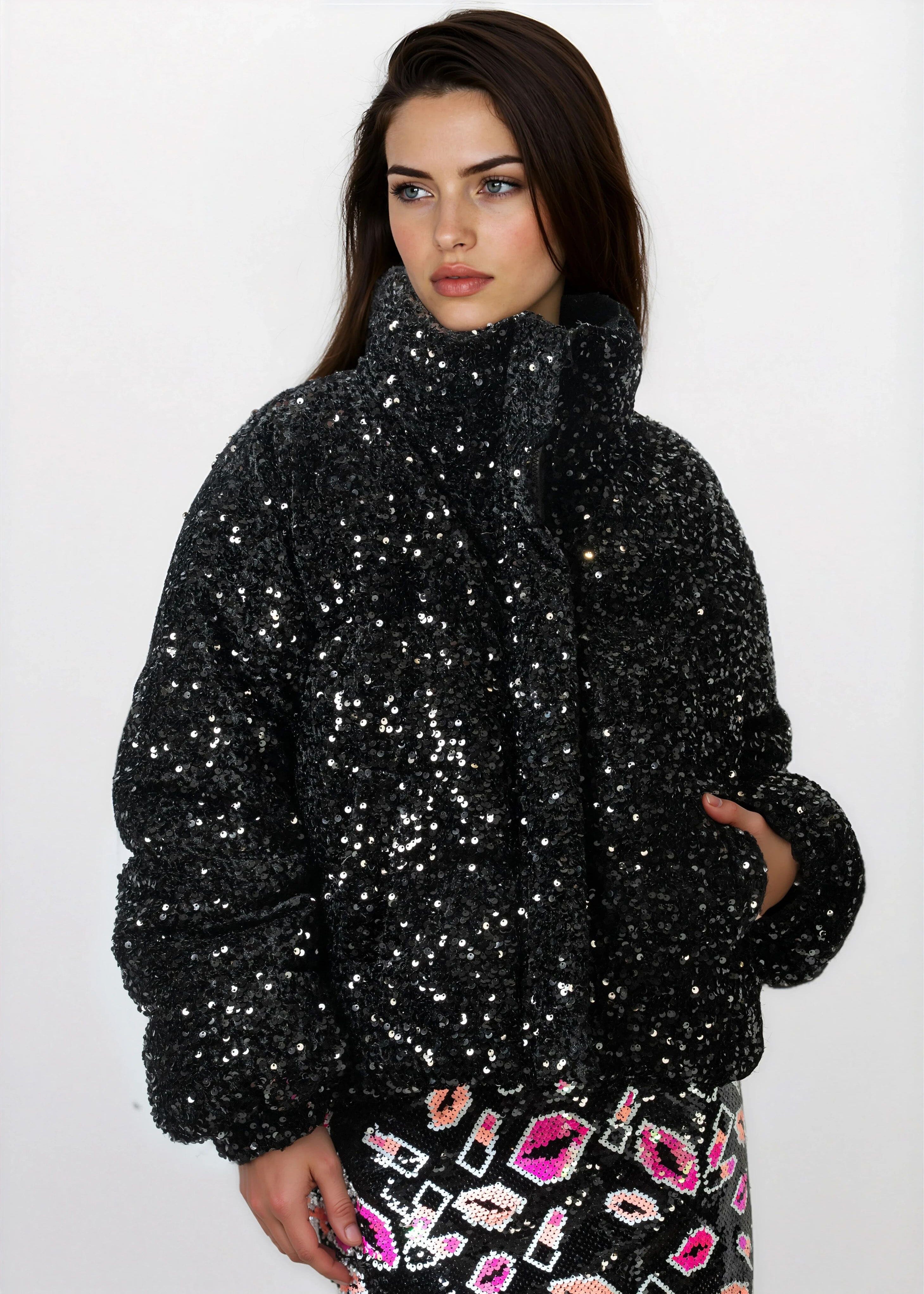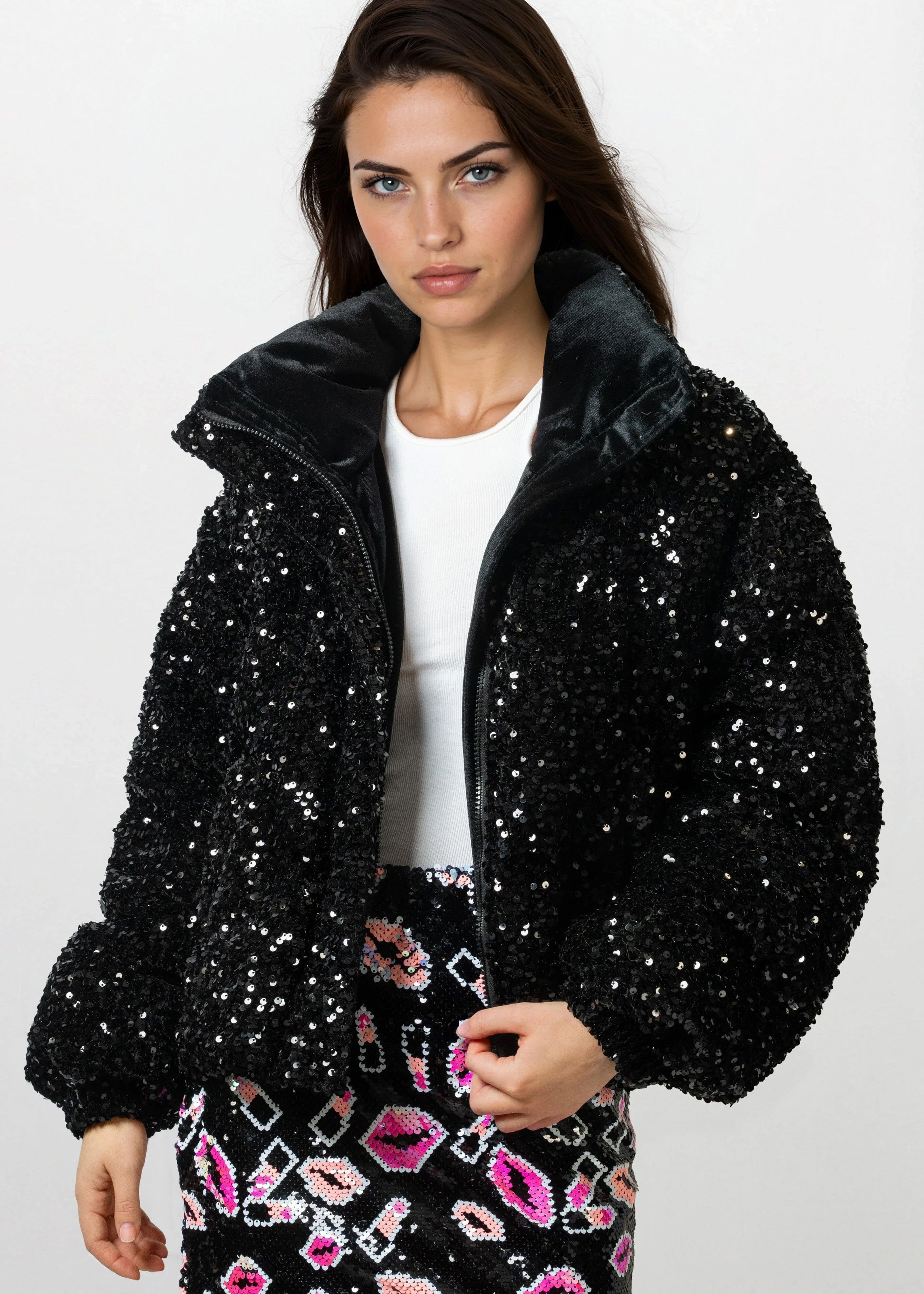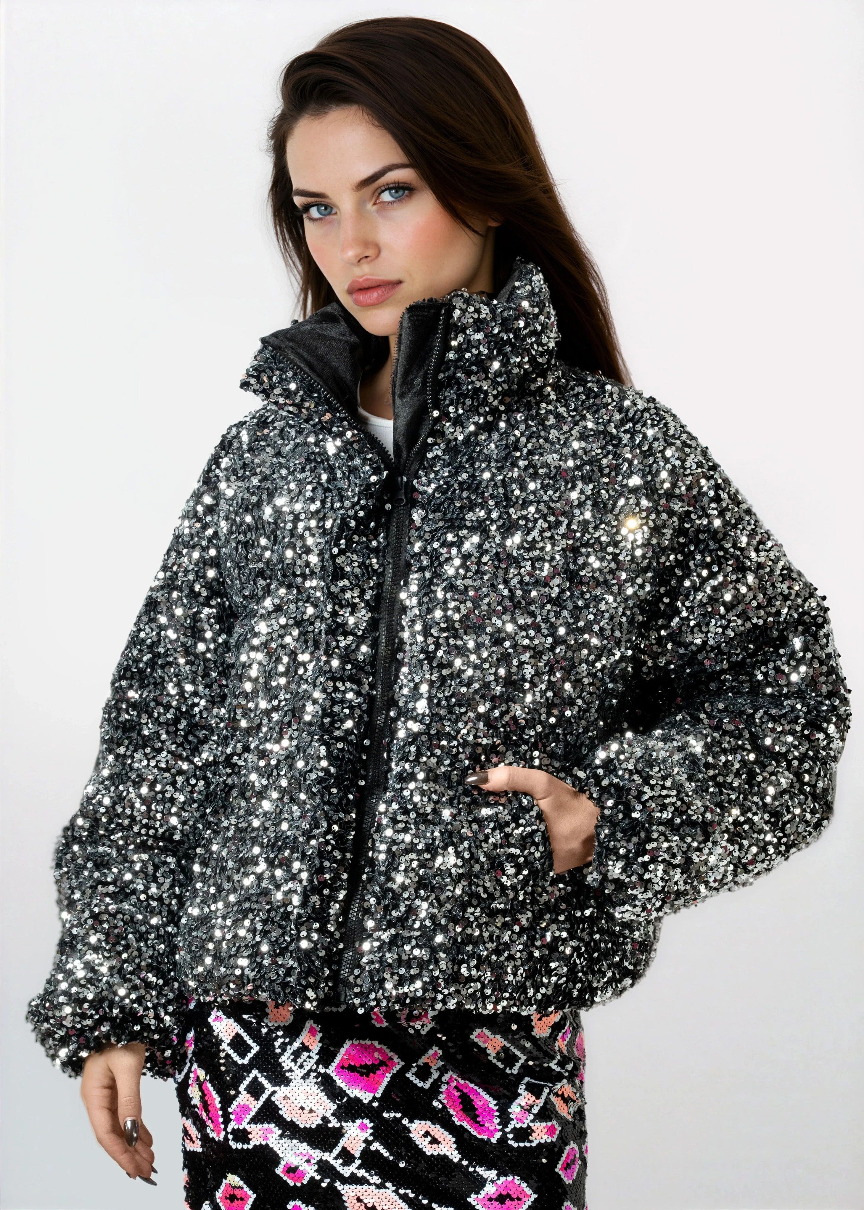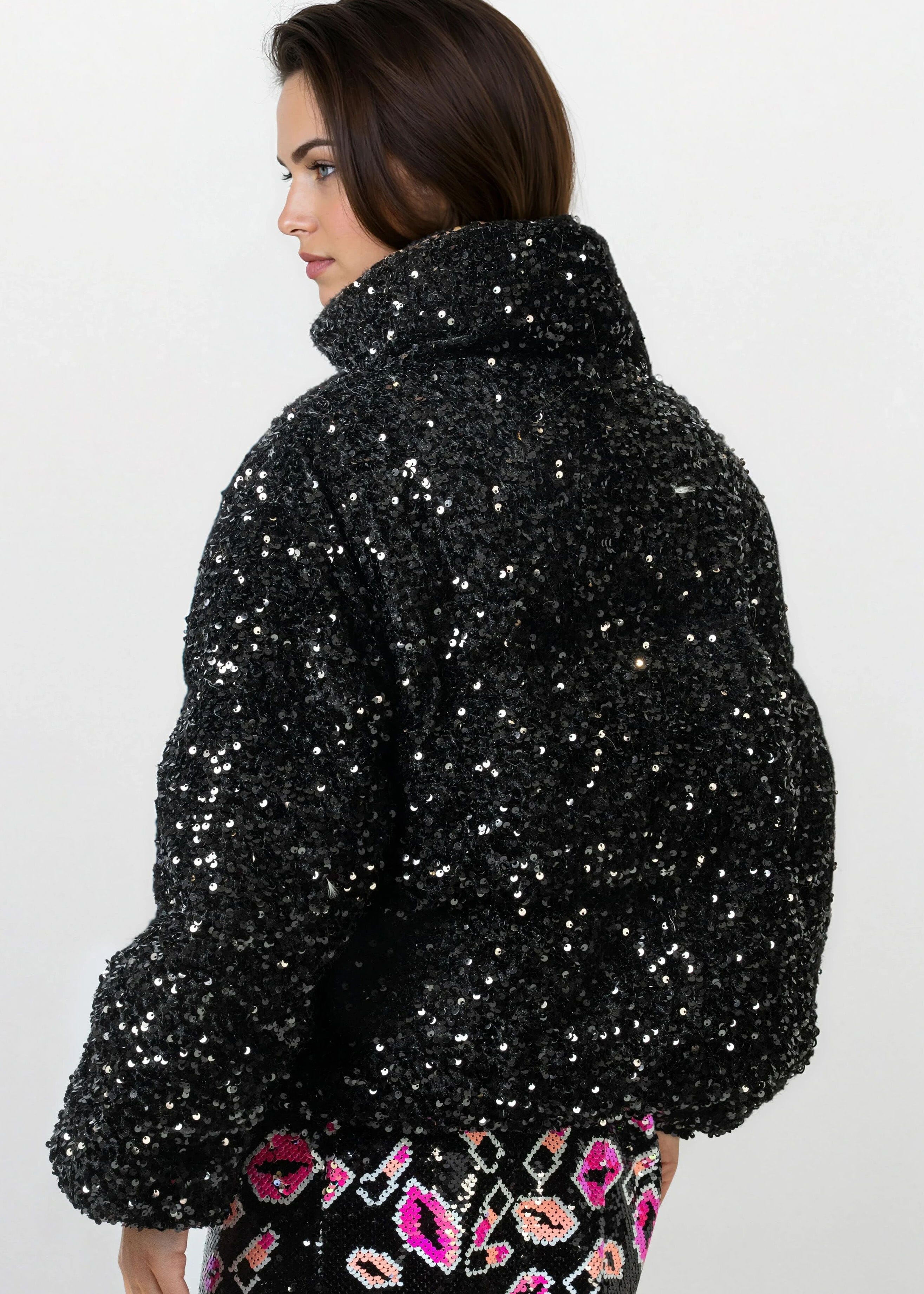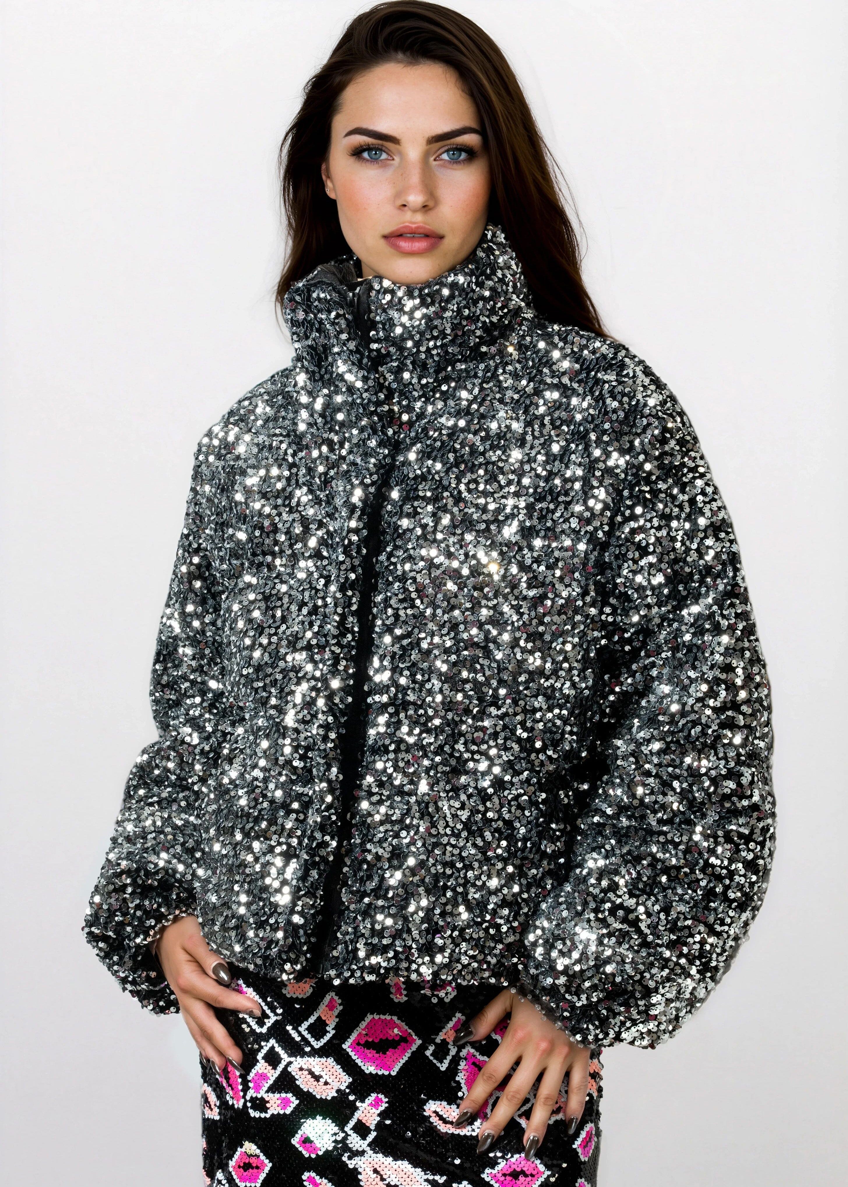 Sequin Puffer Bomber Jacket