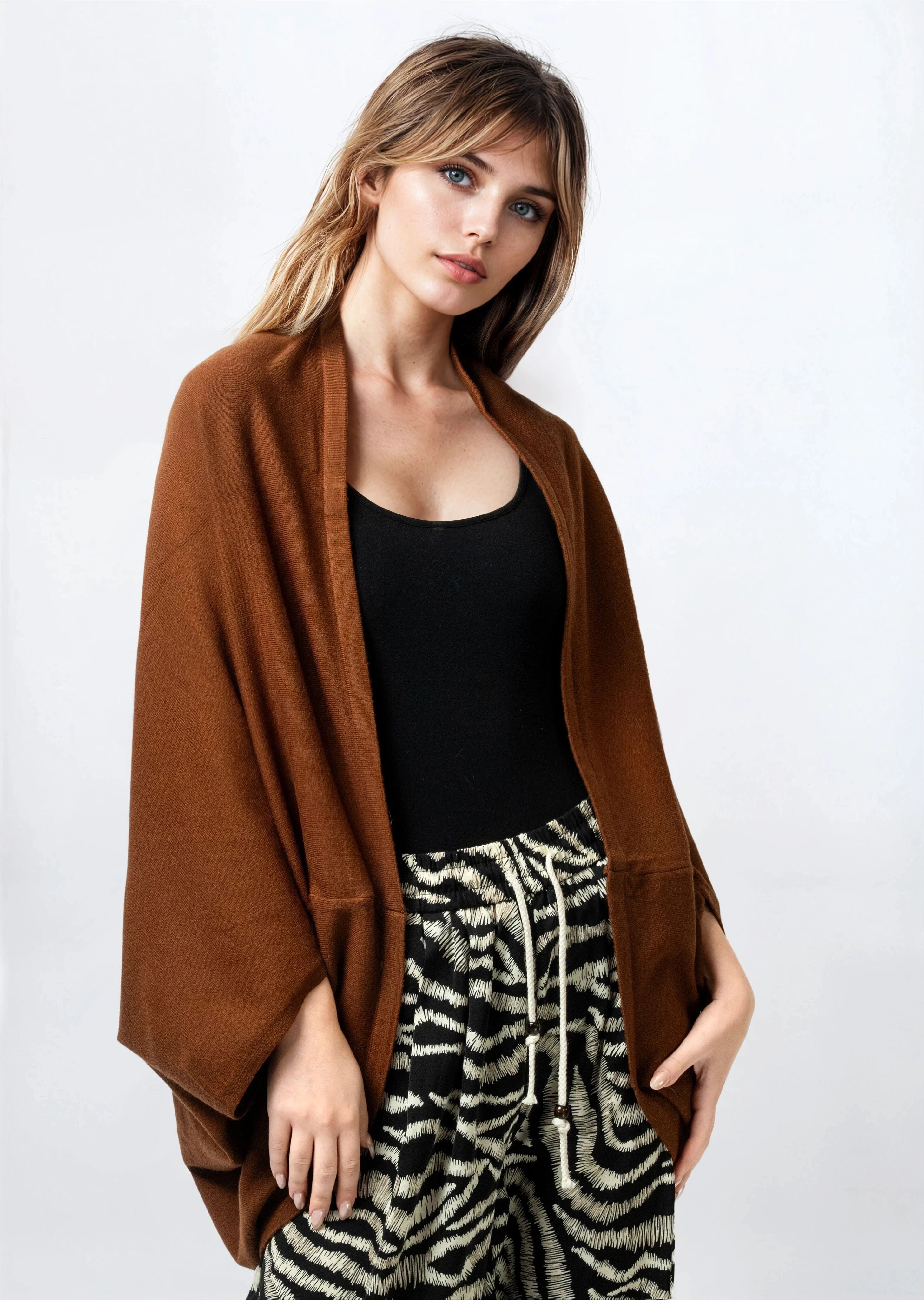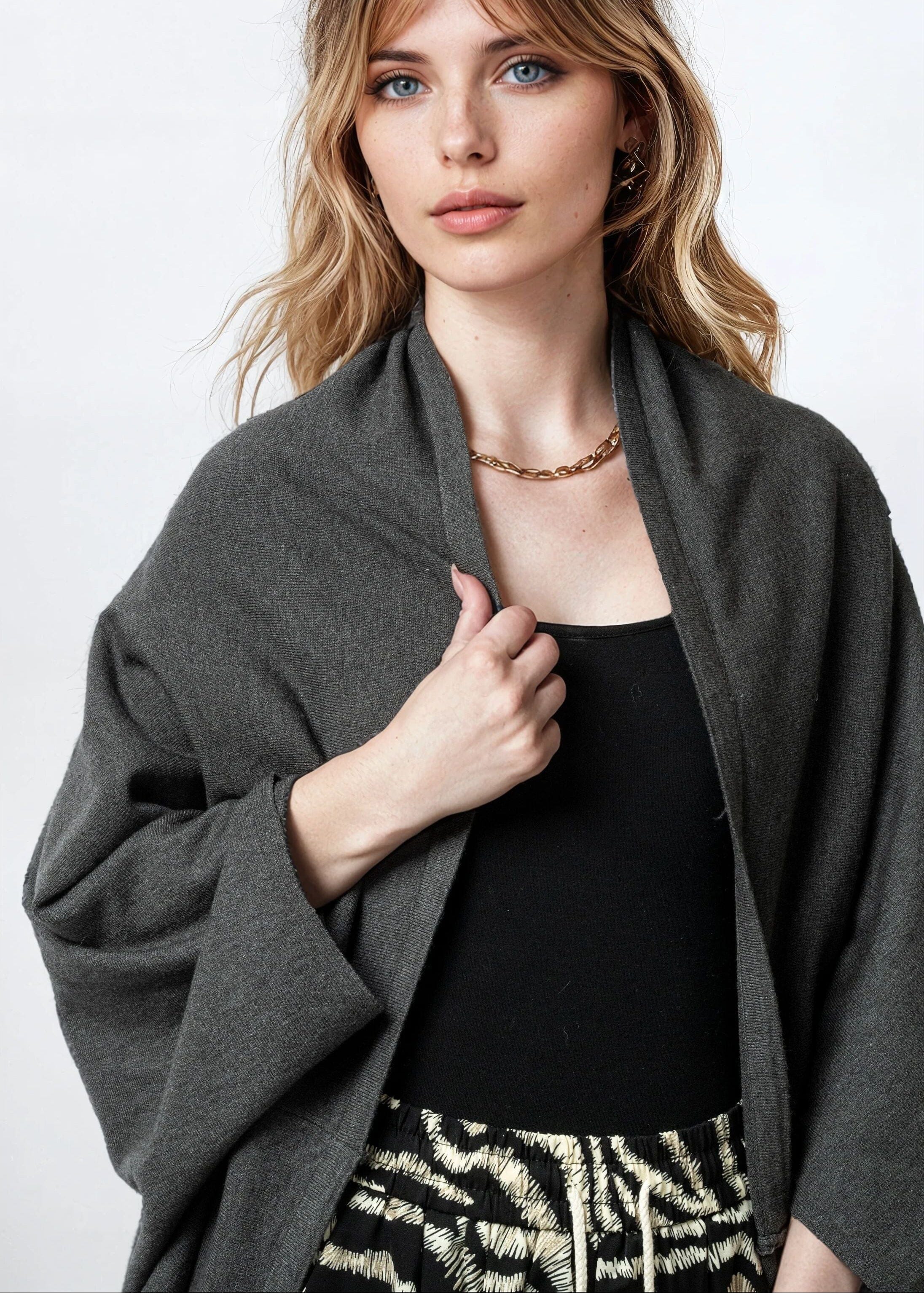 • Draped open-front cardigan with an oversized, cocoon silhouette