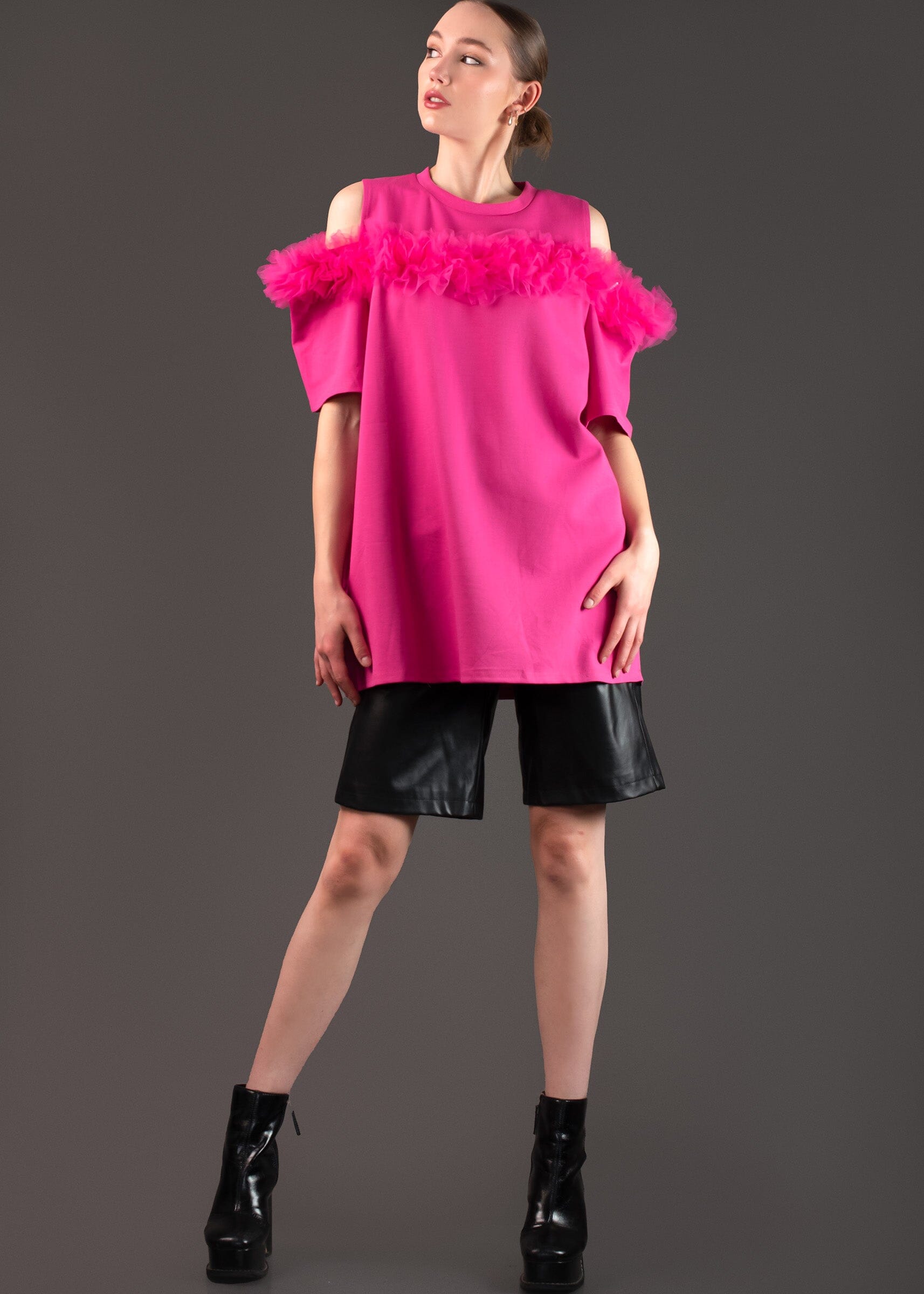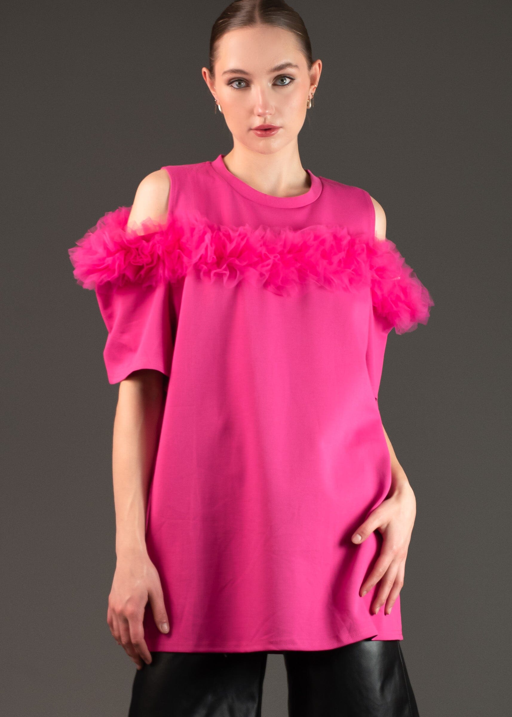 Ruffle + Mesh Cold Shoulder Long Sleeve $115 USD /5.0Rated 5.0 out of 5 stars1 ReviewHot PinkBlackAvailable in 2 colors -