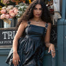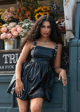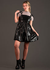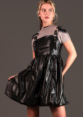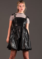 Love that it has pockets and adjustable straps! Its crinkly and fun and not as heavy as I thought it would be. The dress is very comfortable and the pleather material isn't as thick and constrictive as another pleather dress I have.