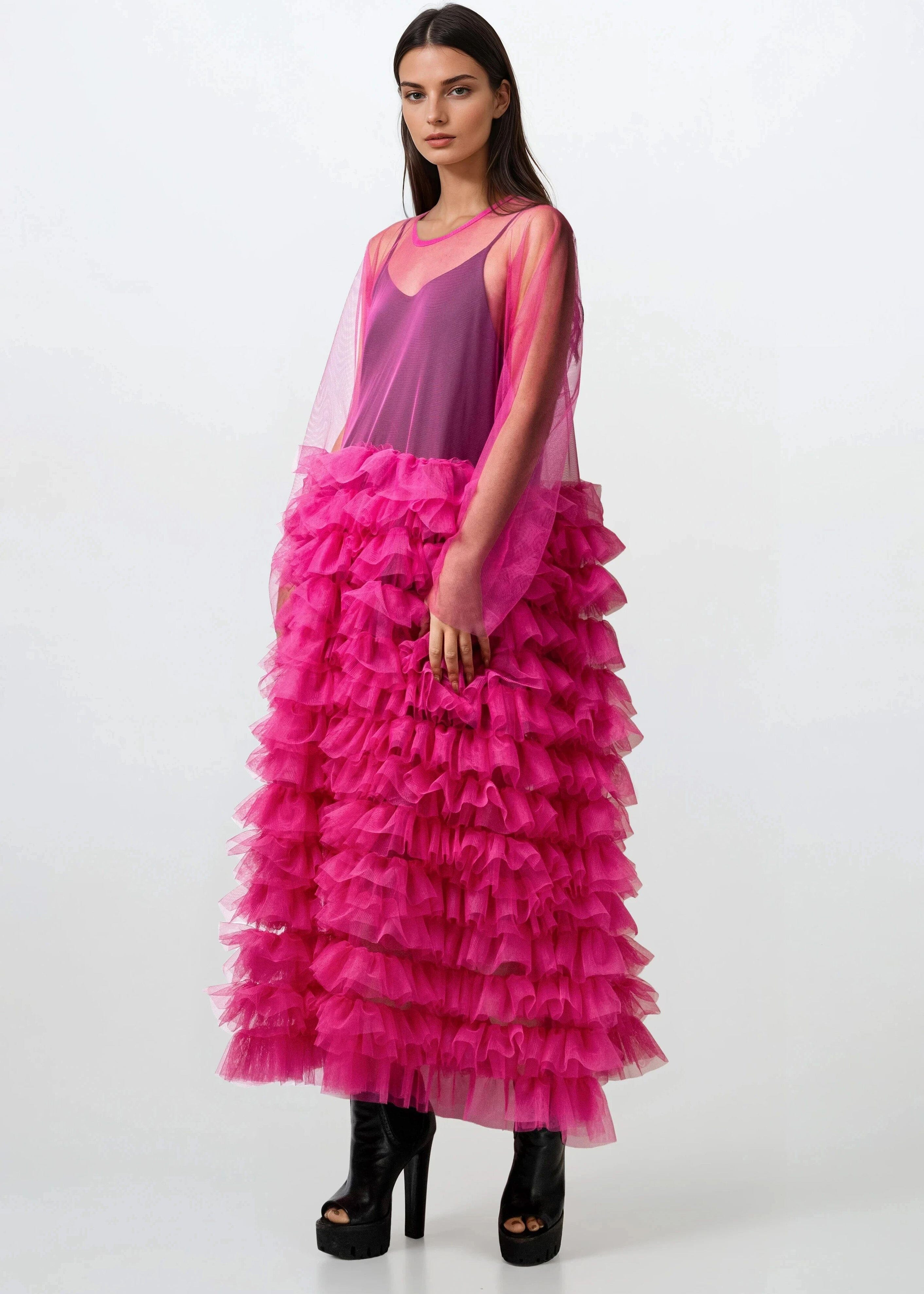 • Layers on layers of electric pink tulle for unapologetic volume