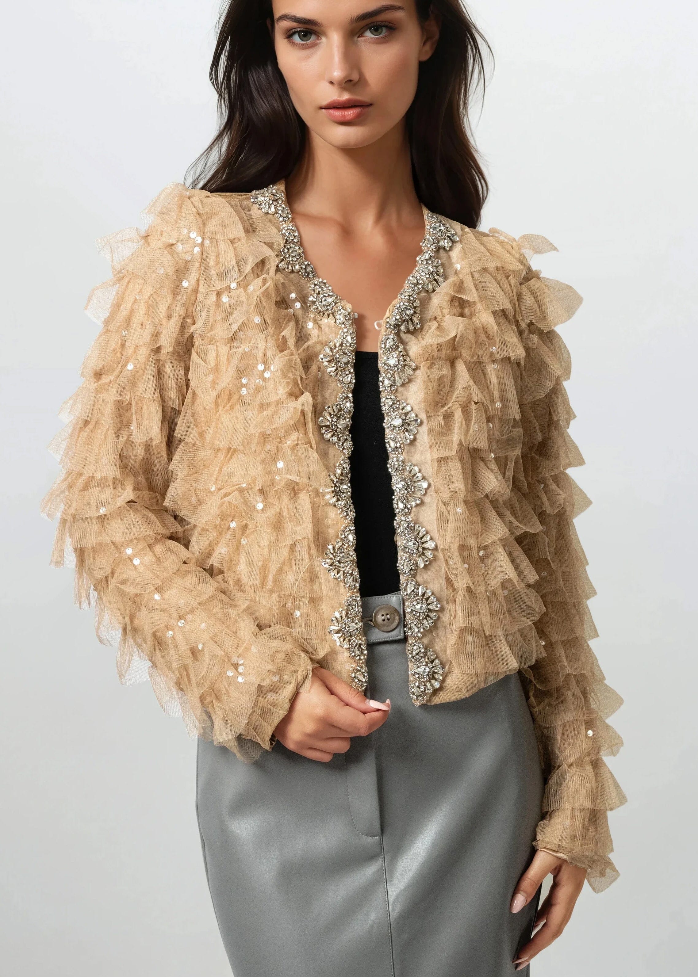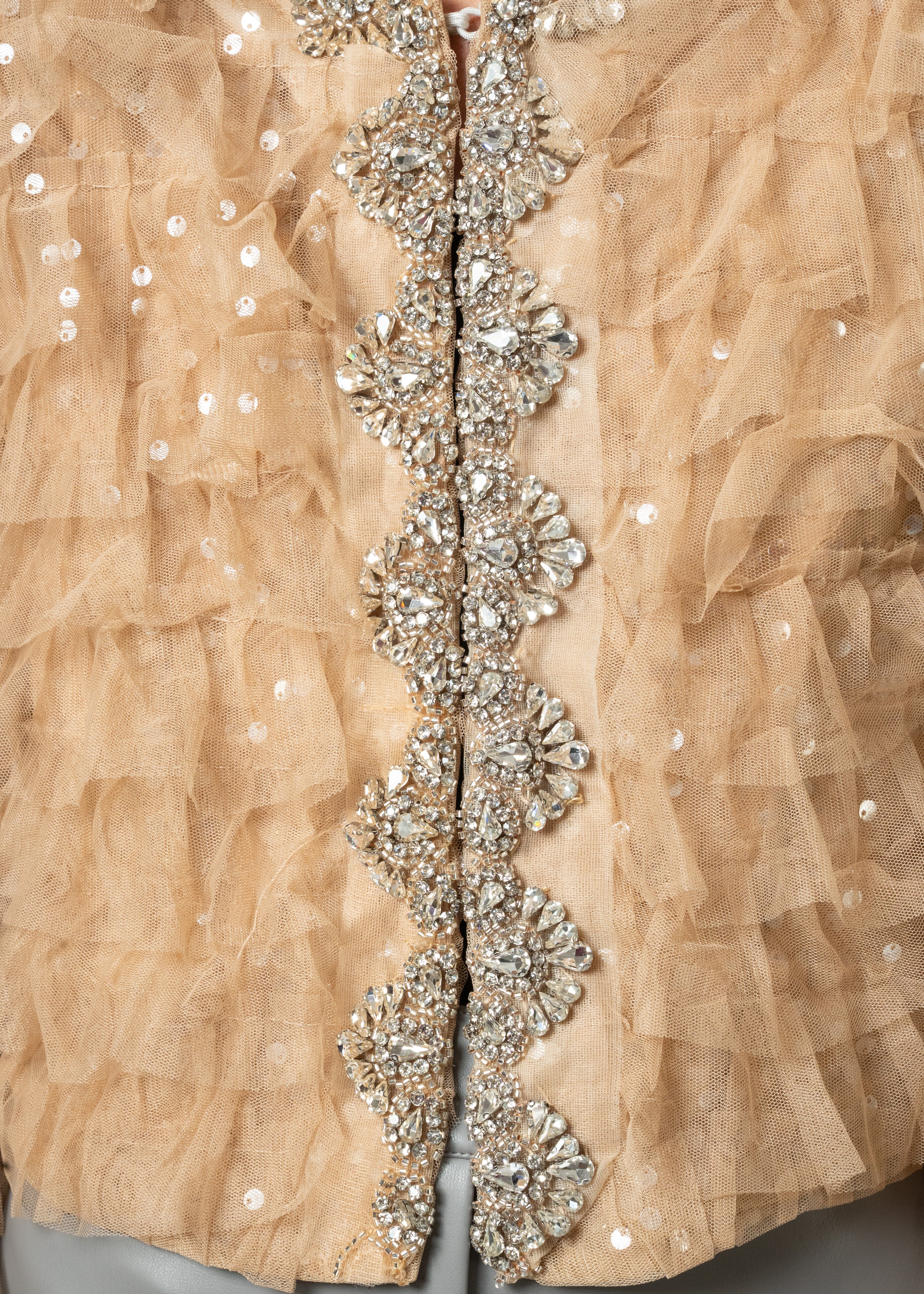 - Layered tulle ruffles create unapologetic volume and a statement silhouette