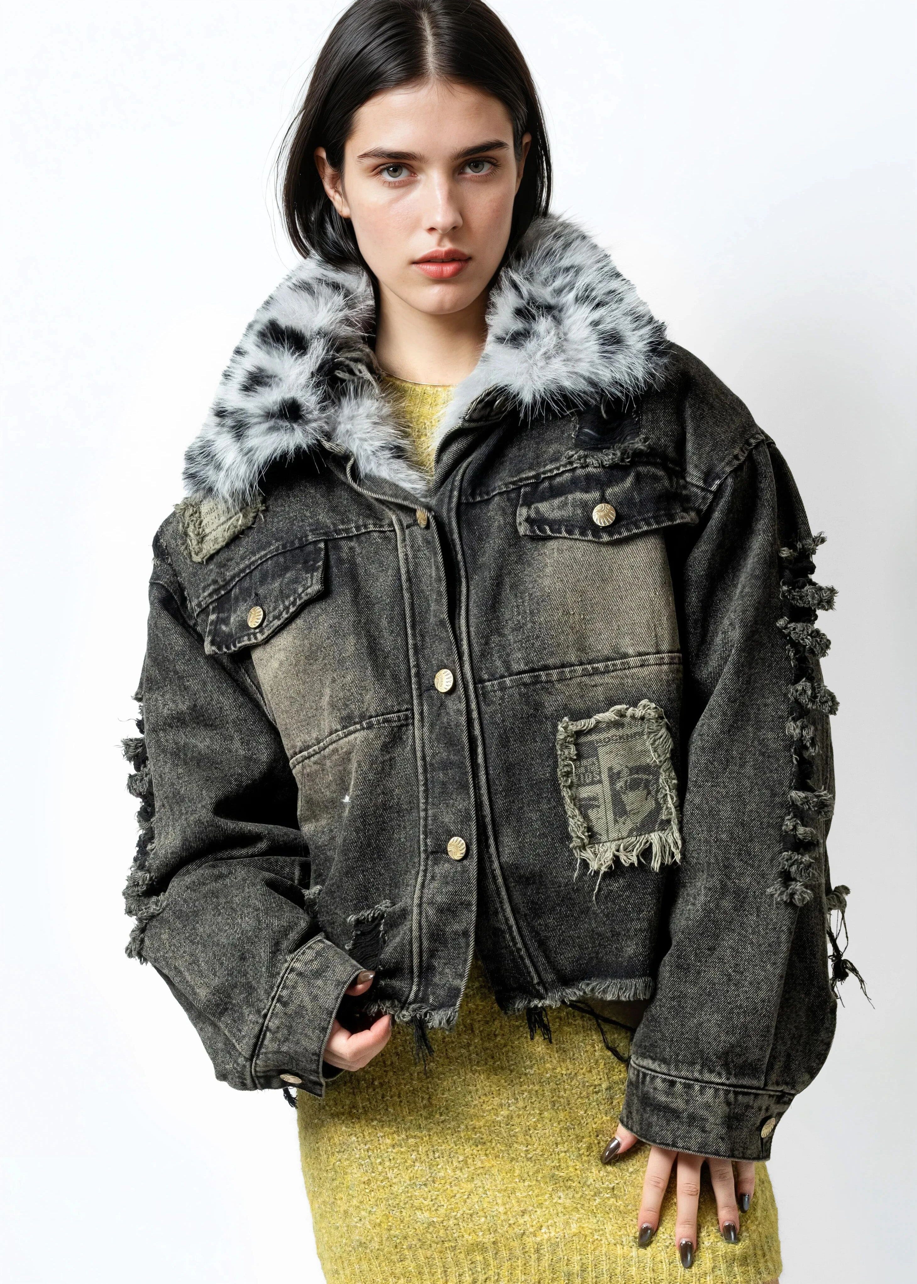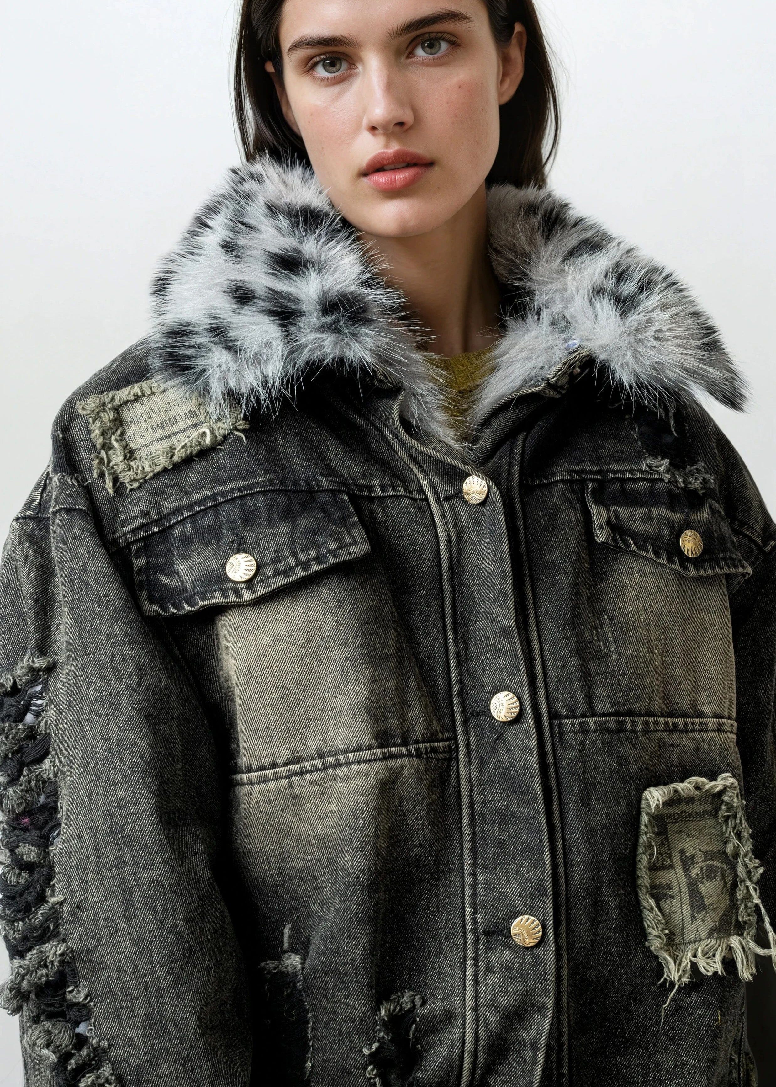 - Distressed sleeve panels + patched abrasions for a wrecked texture