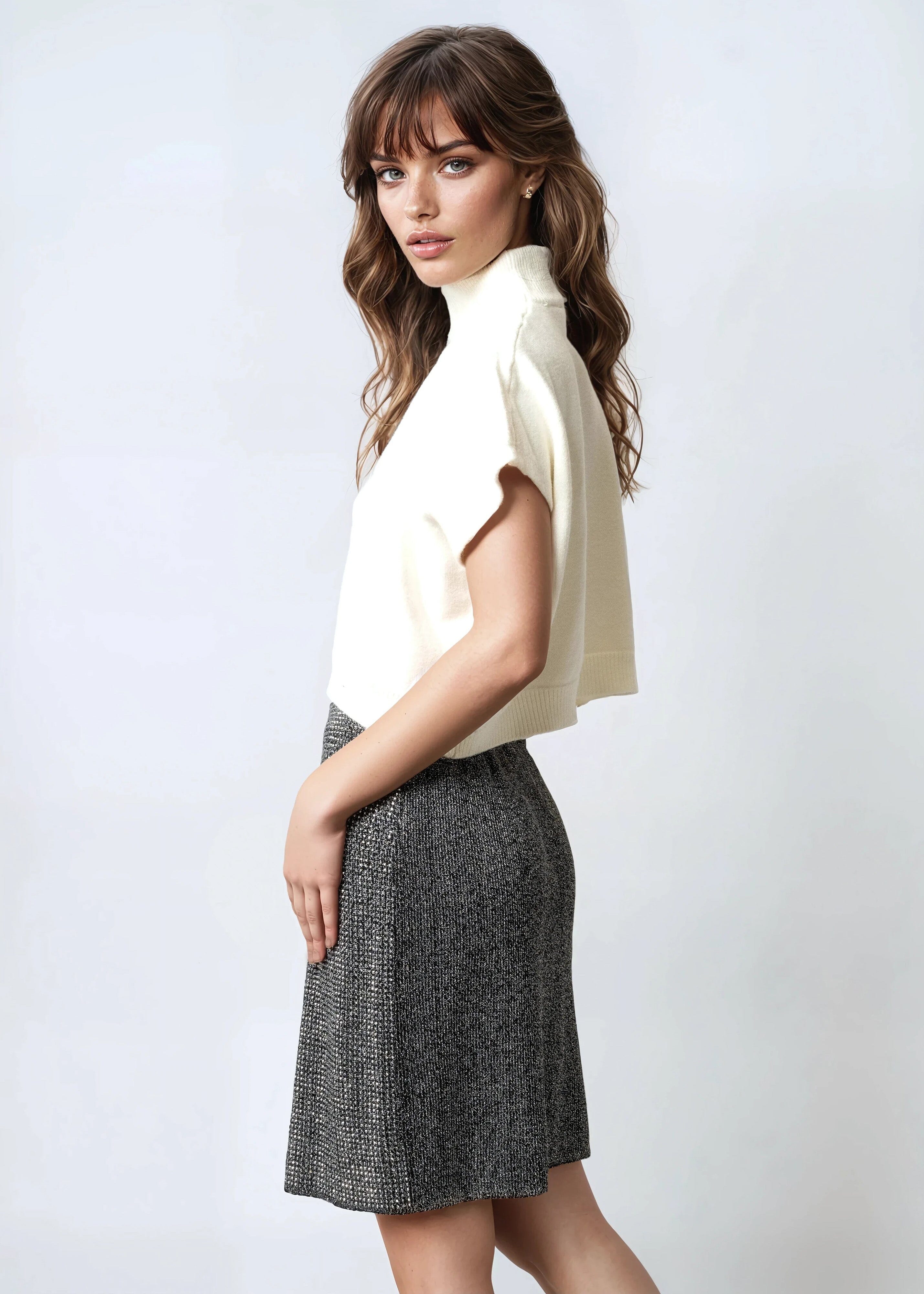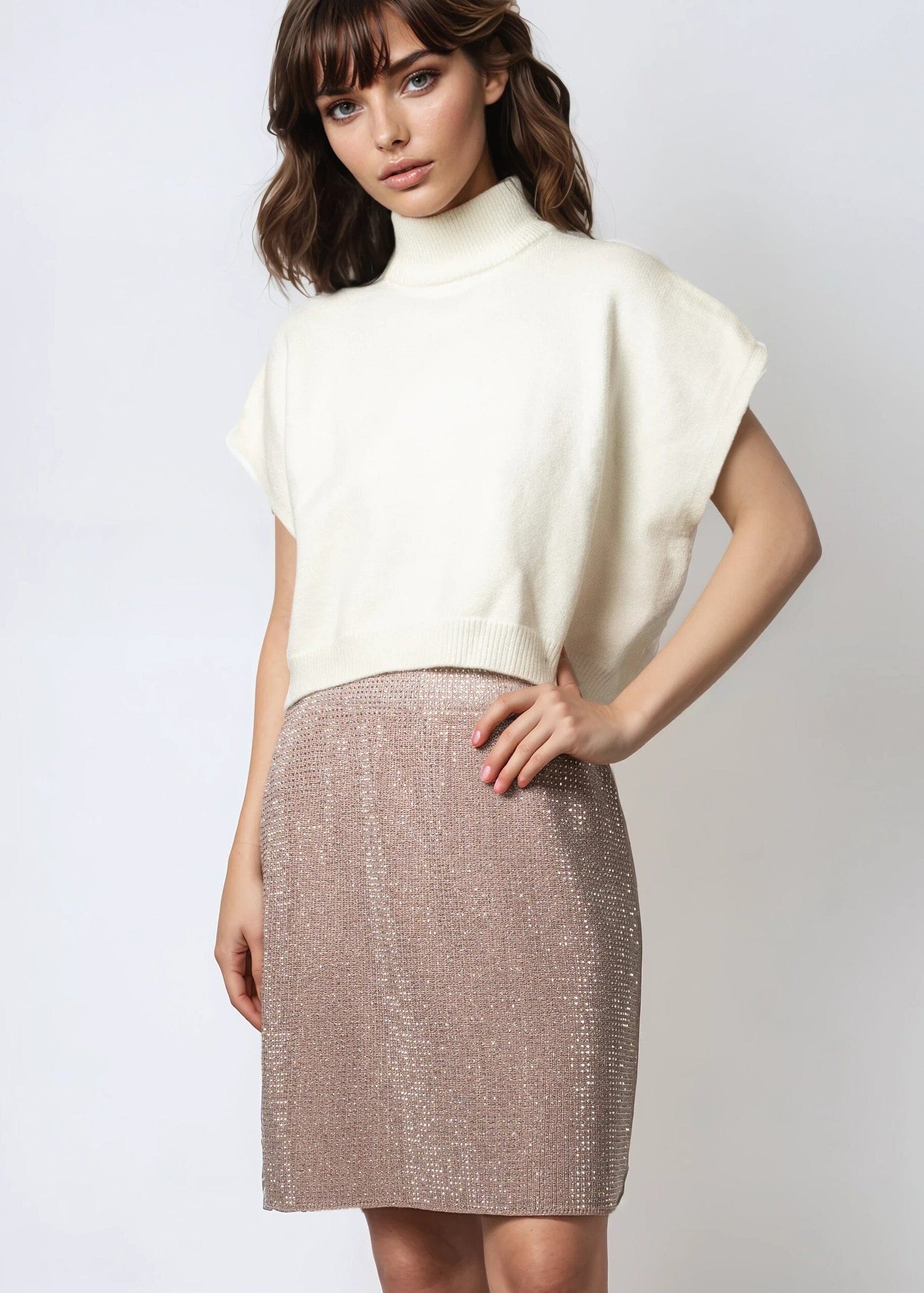 Knitted Rhinestone Pencil Skirt