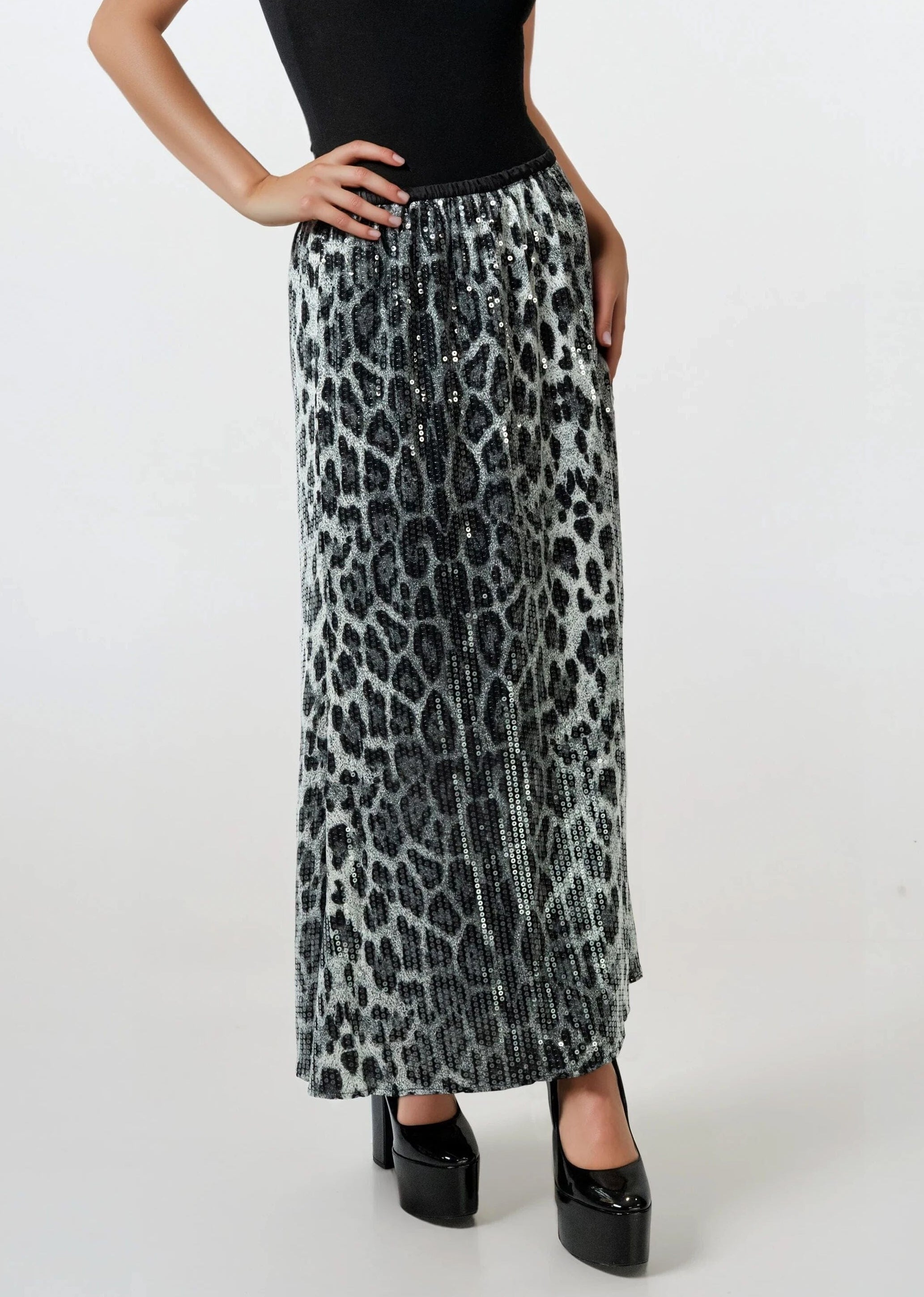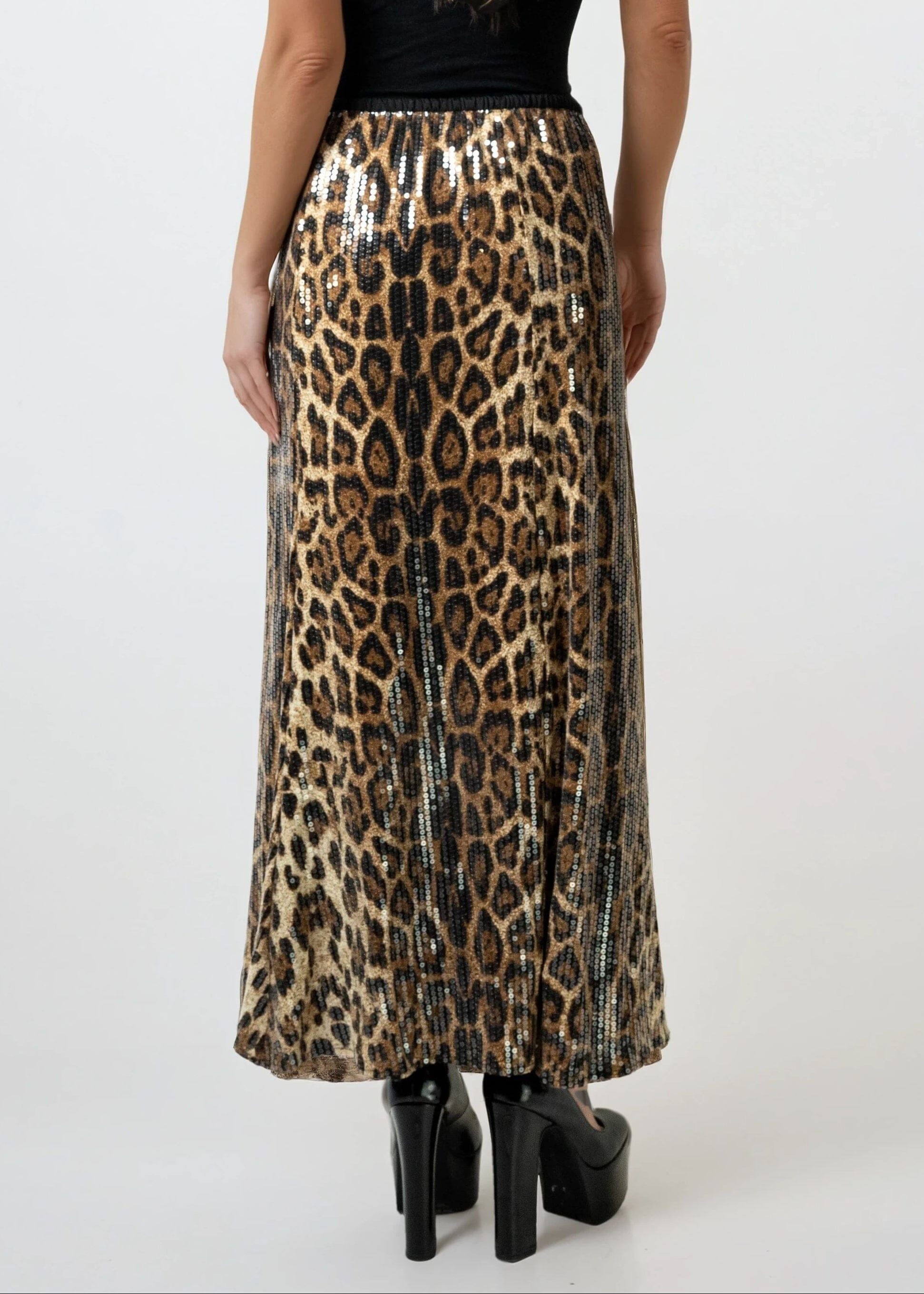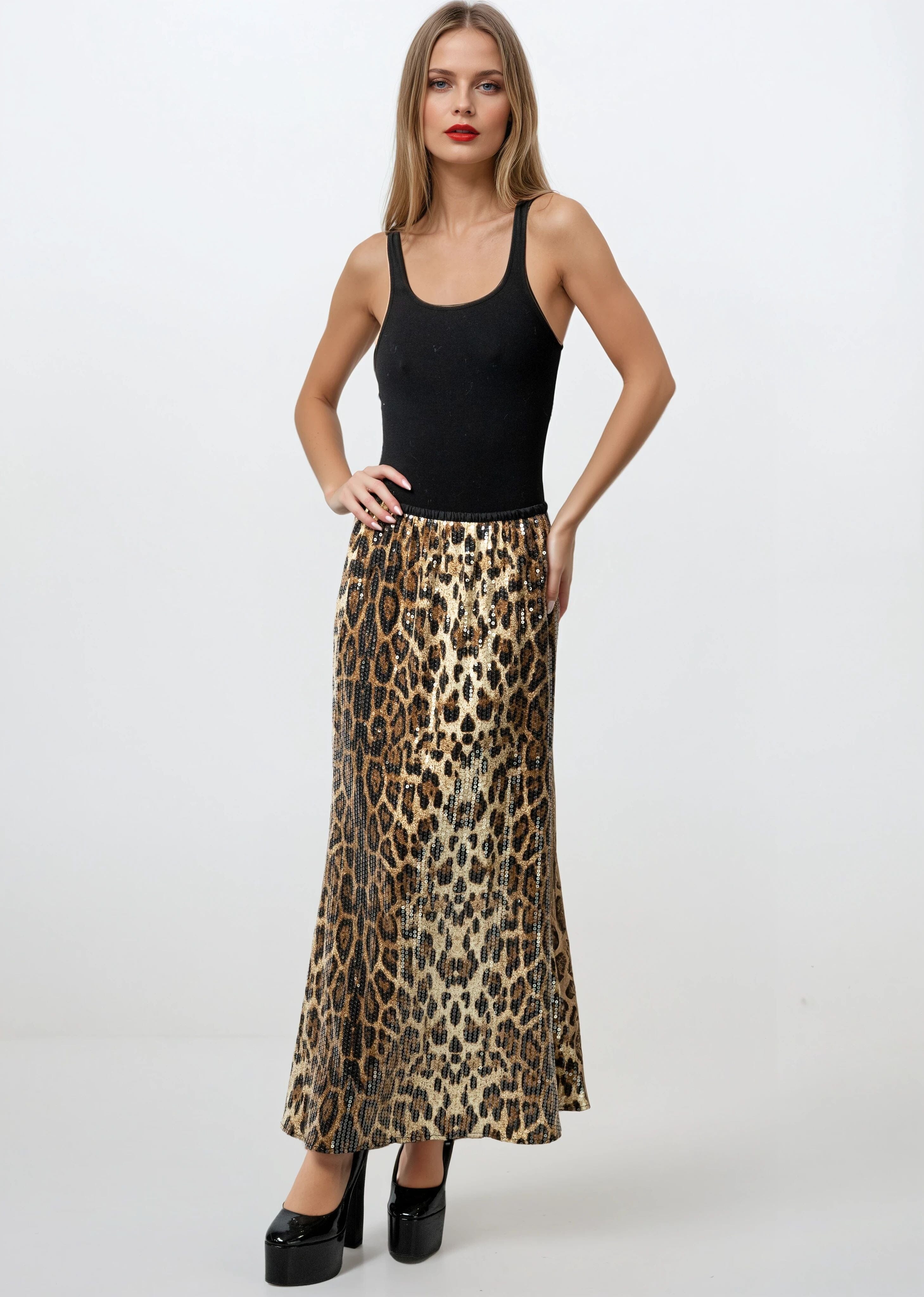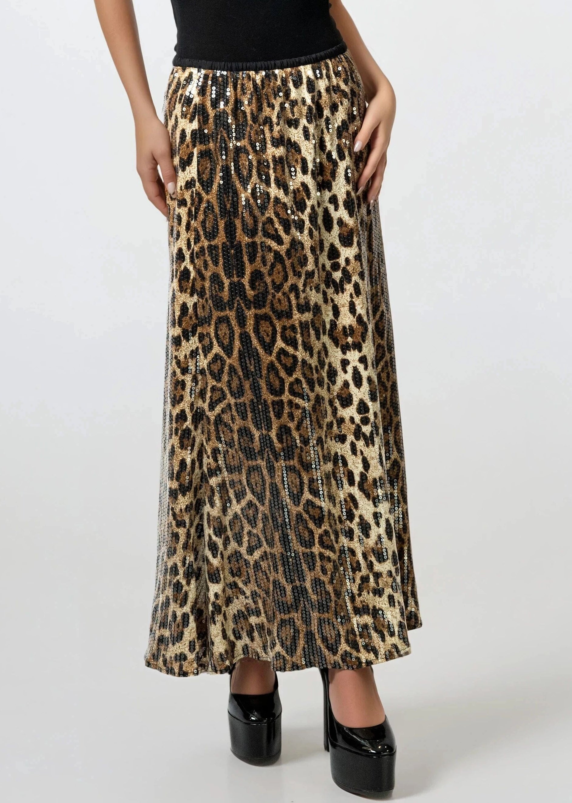 - Leopard sequin maxi skirt with full lining for smooth comfort