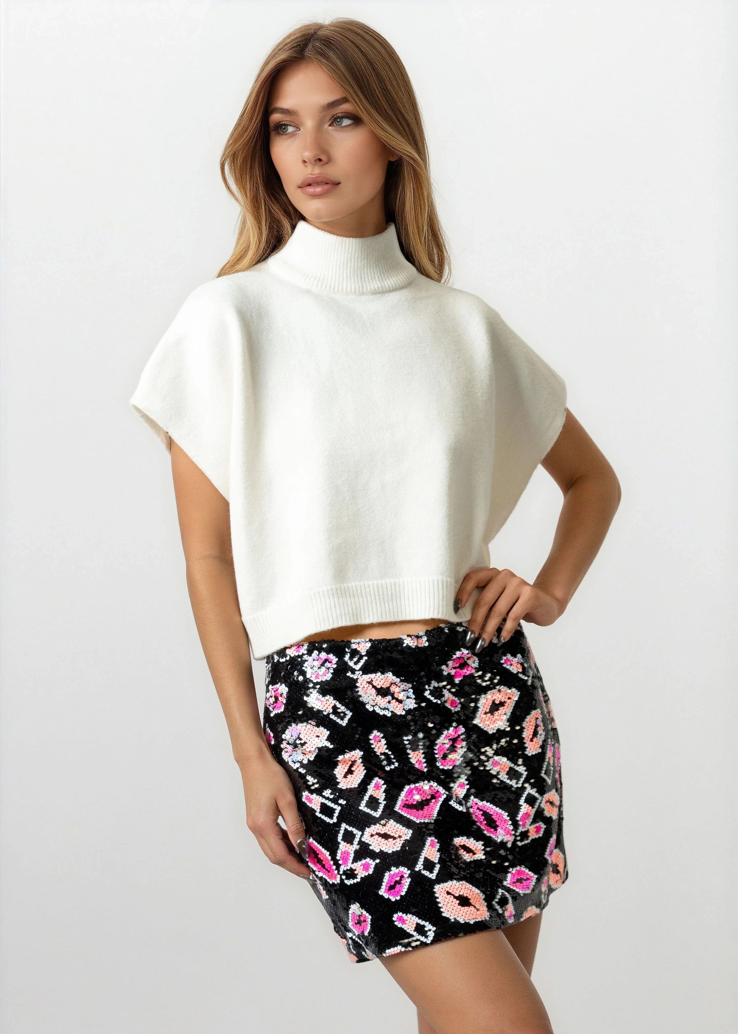 • Neon pop-art sequin mini built to steal the whole room’s attention