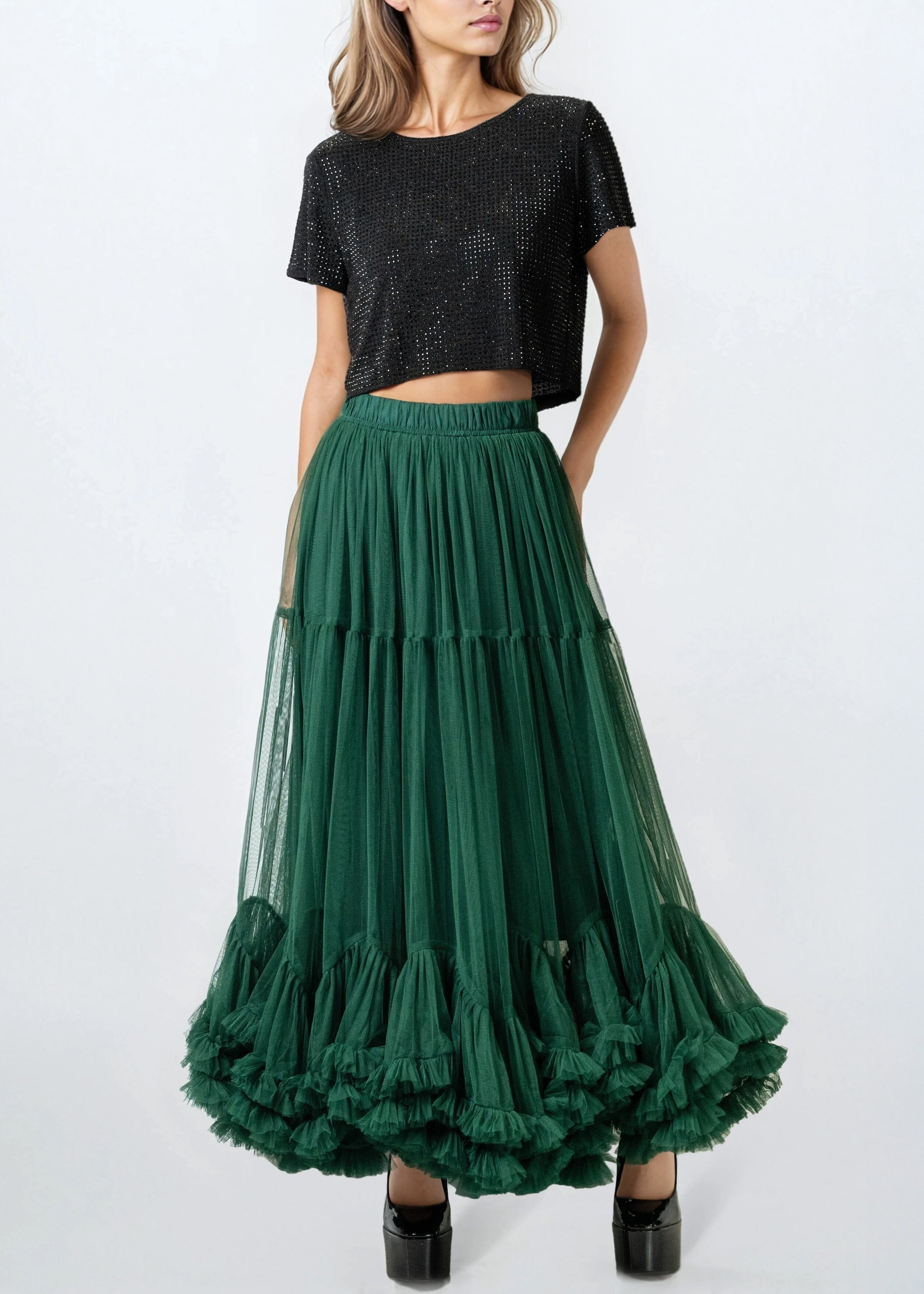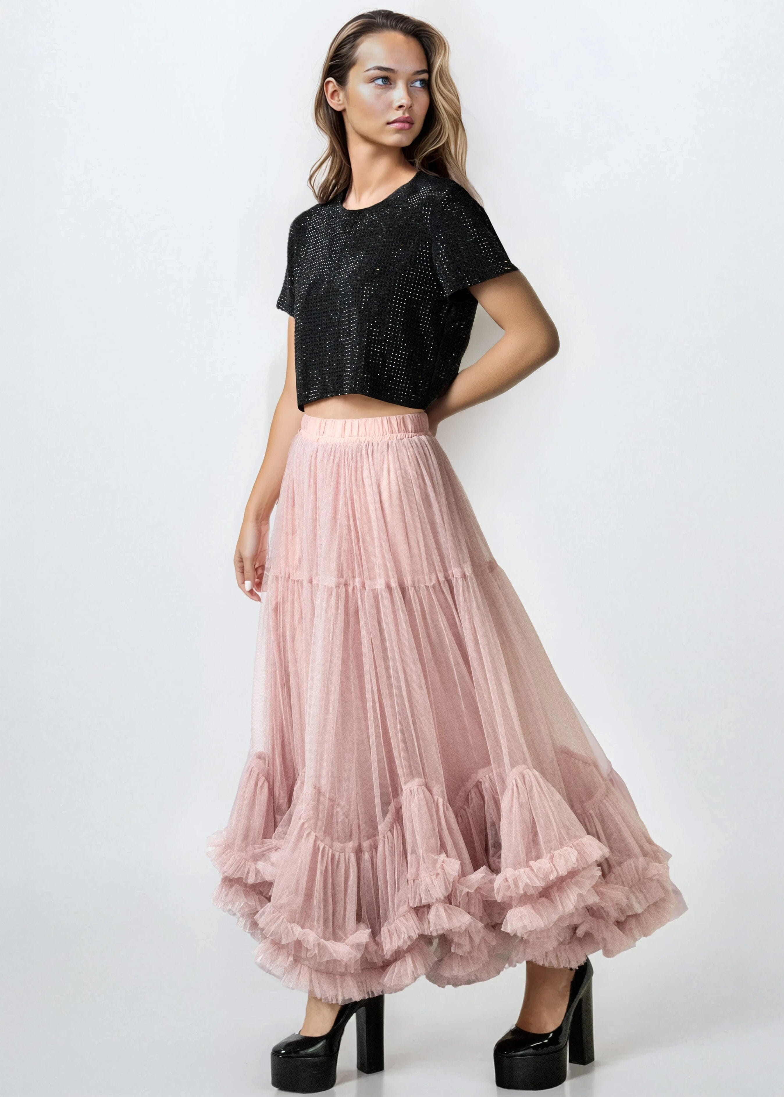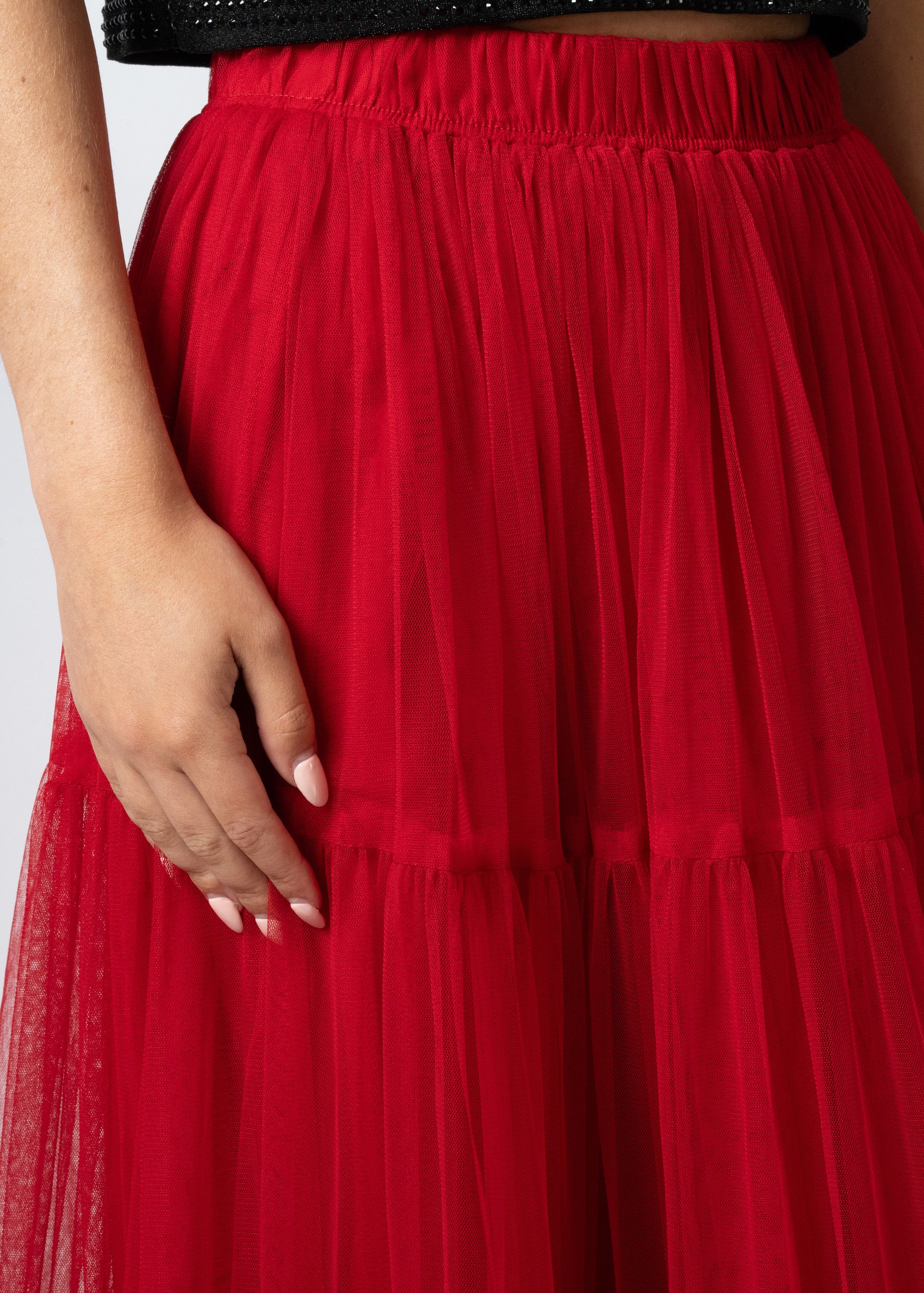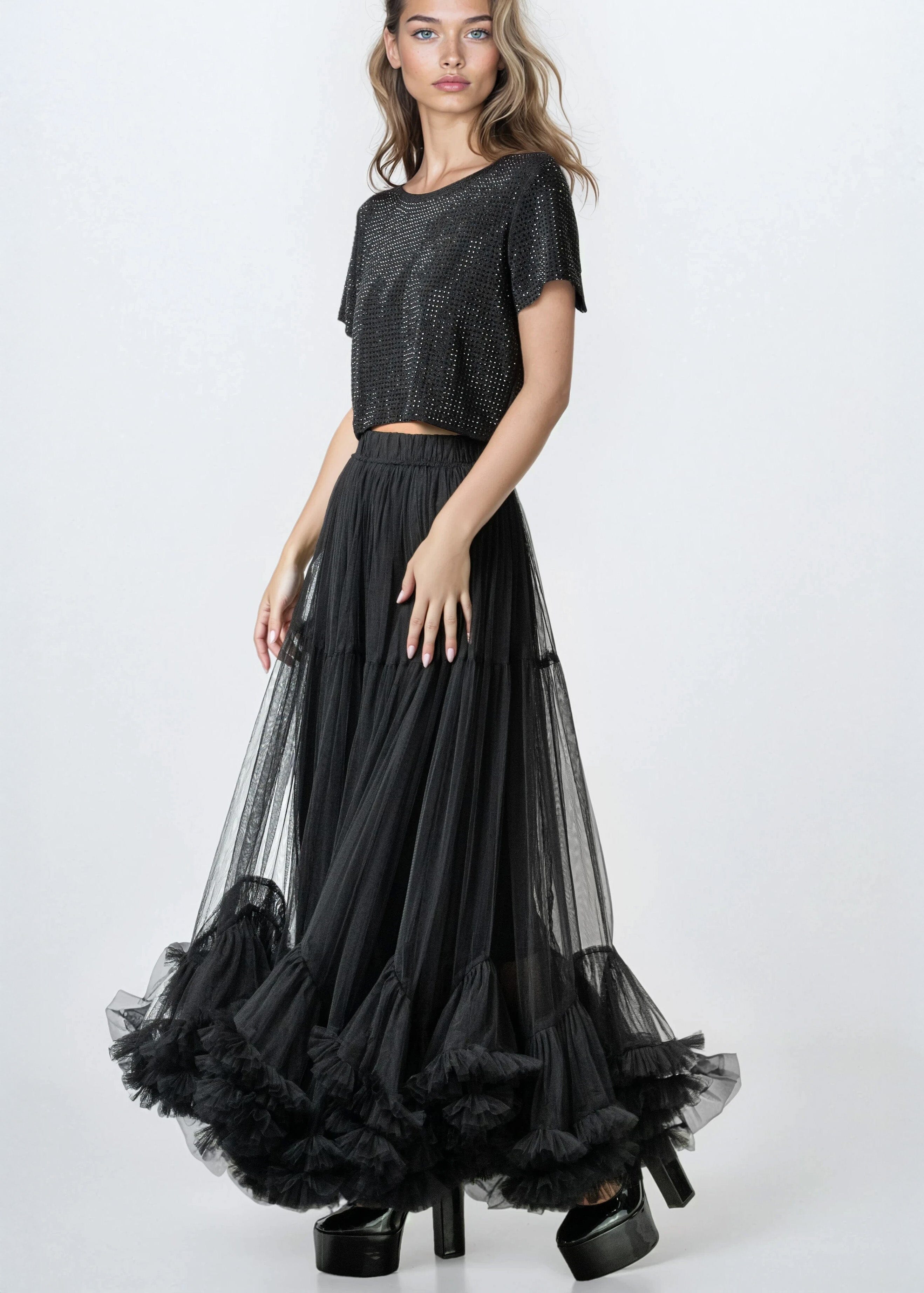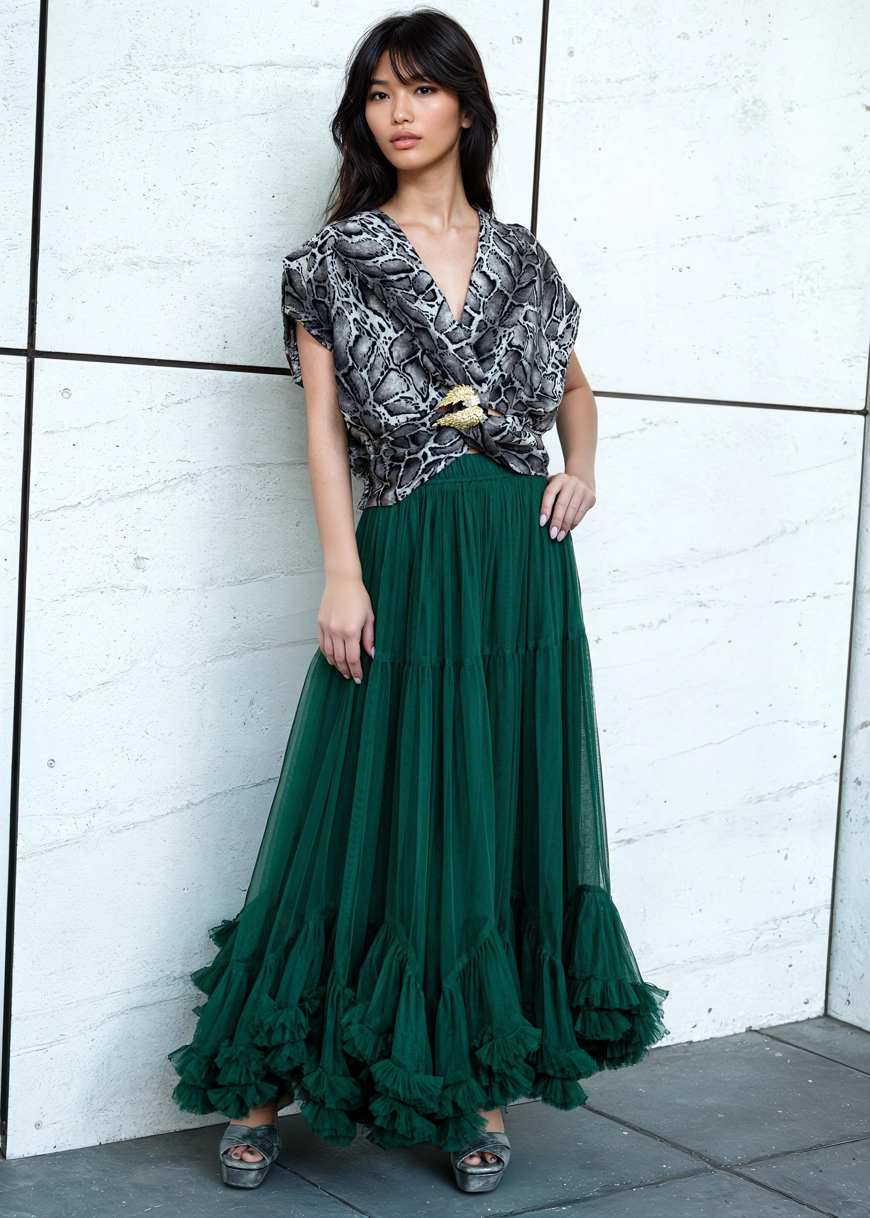 - Layers of bold tulle with a tiered hem made for maximum drama