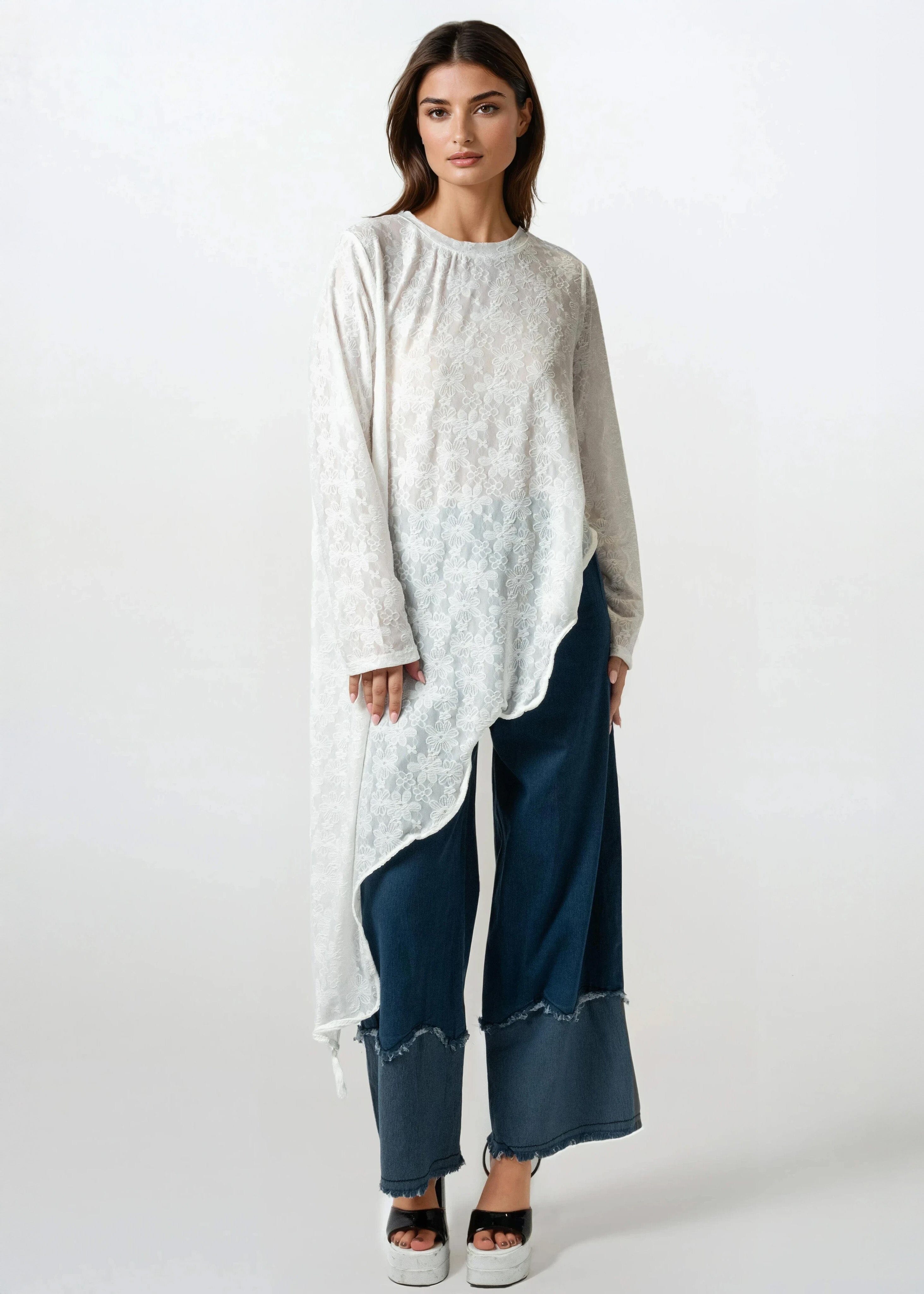 - Sheer lace overlay with subtle floral texture for an edgy-romantic vibe