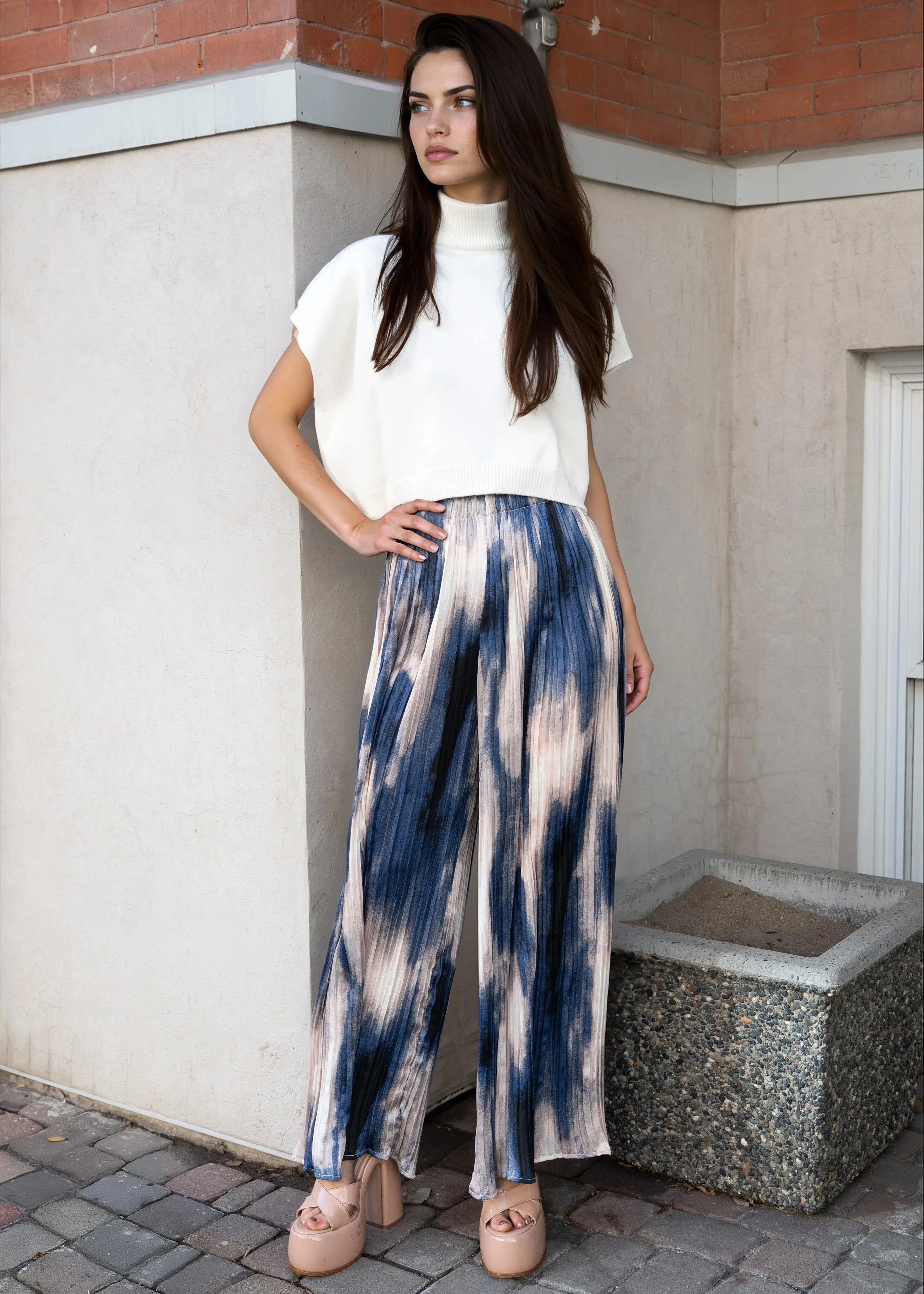 Abstract Pleated Wide Leg Pant