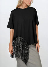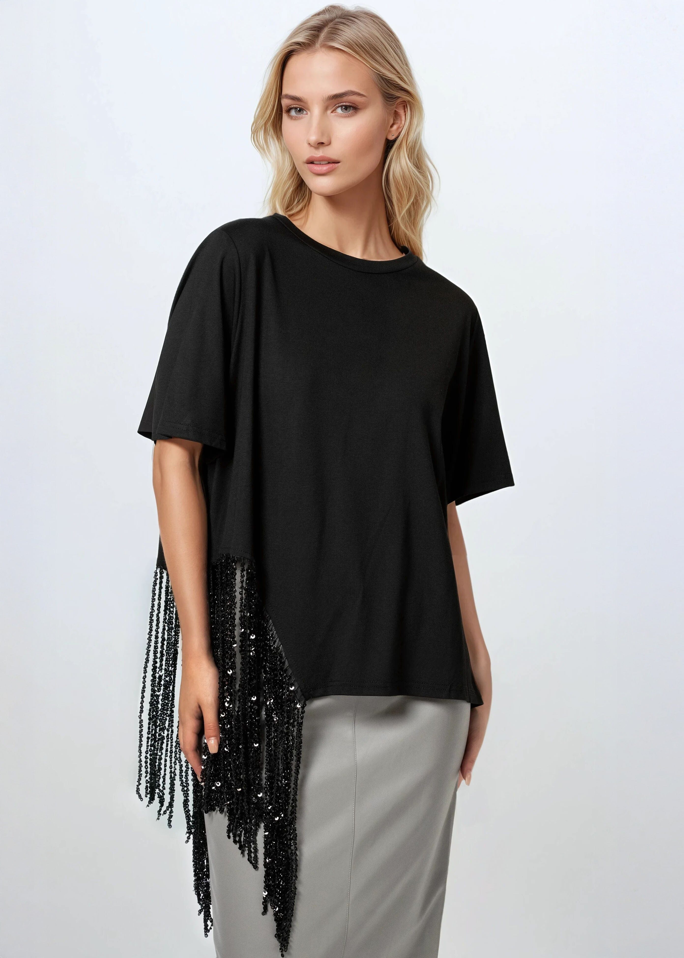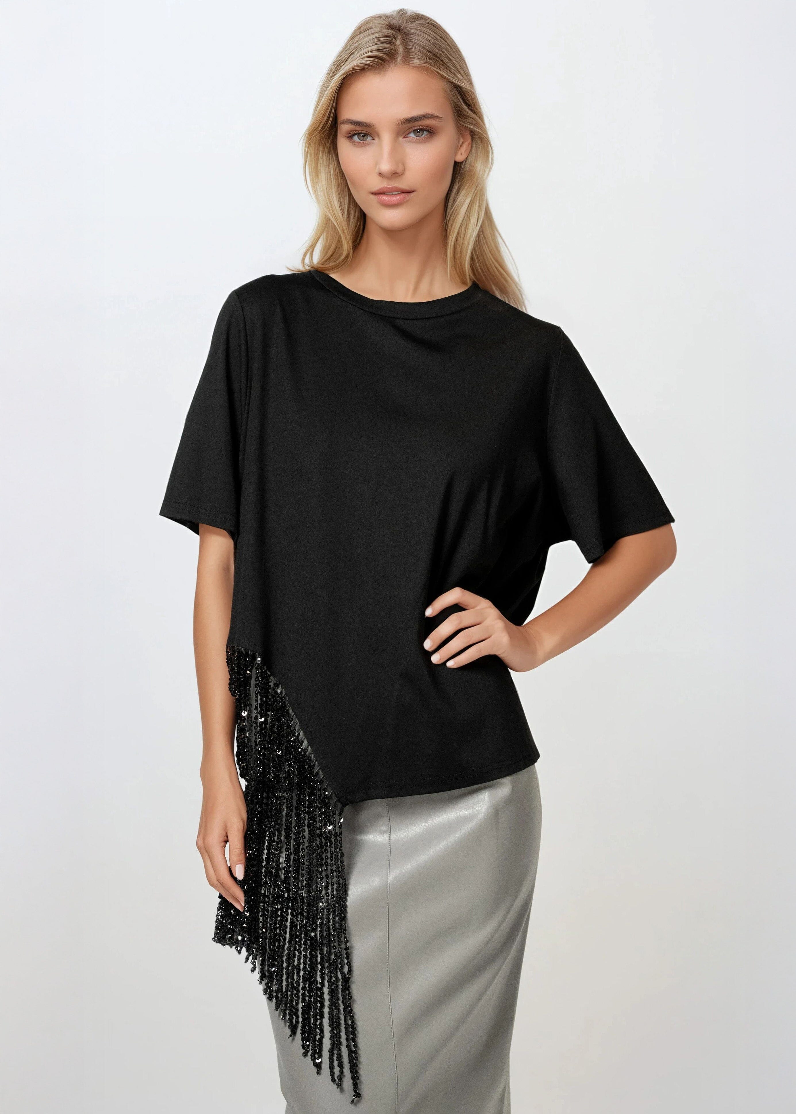 This t-shirt is the perfect mix of soft t-shirt that you always grab for and sparkly top for a night out.