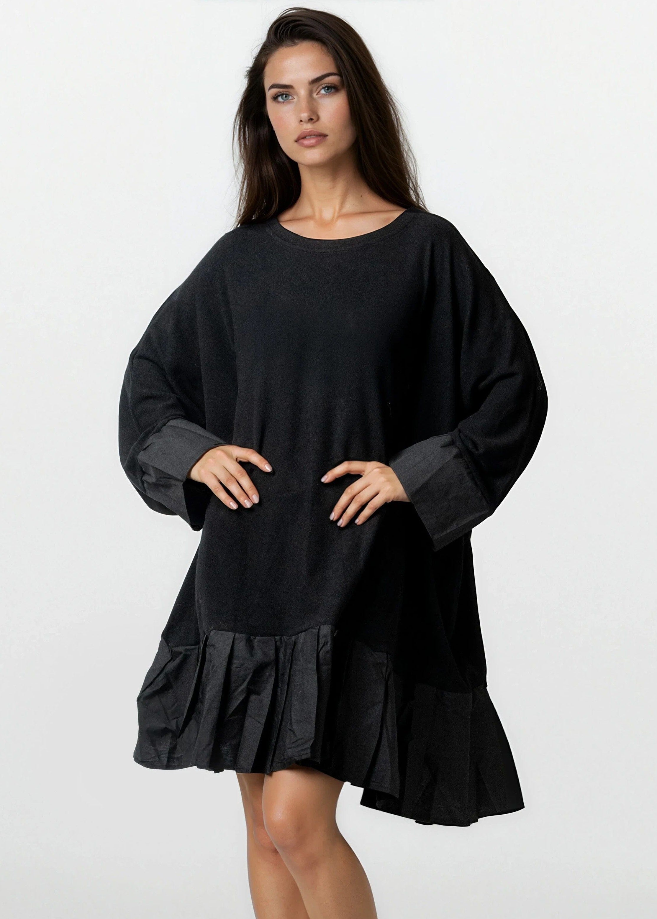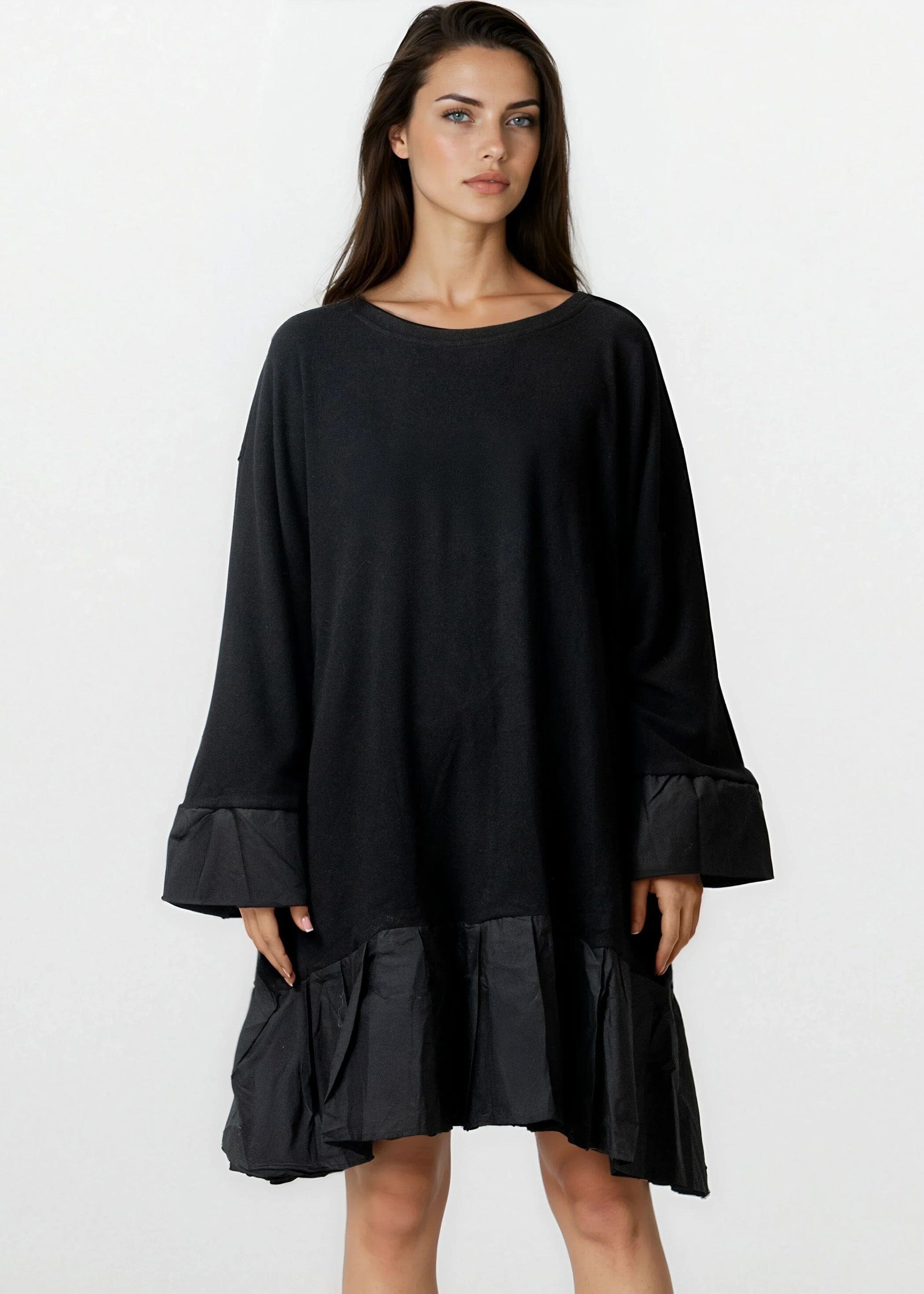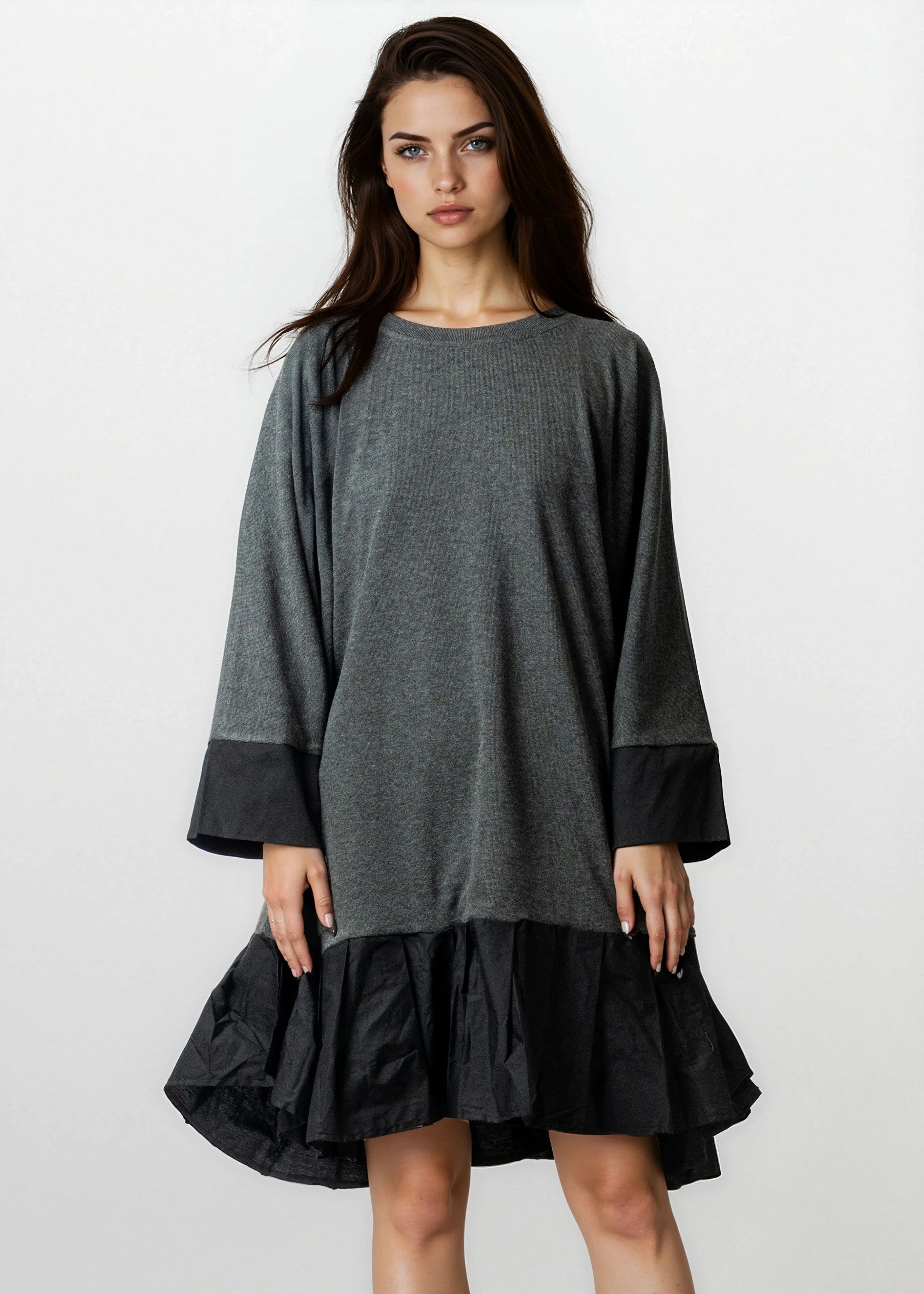 - Oversized sweatshirt-dress energy with a sharp, street-casual attitude