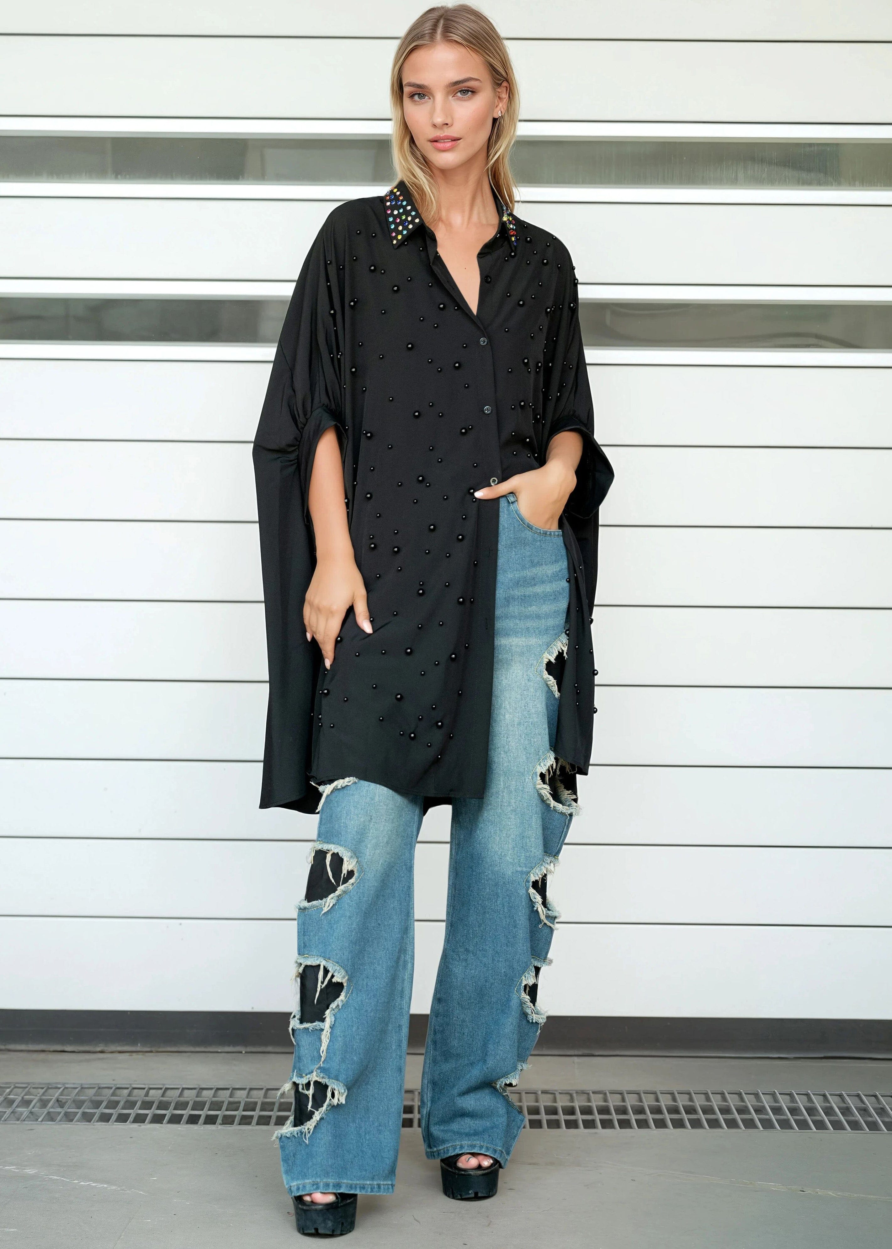 - Machine wash cold + hang to dry. If the item has sequins, rhinestones, pearls, or any other embellishments, put inside a mesh laundry bag for delicates.