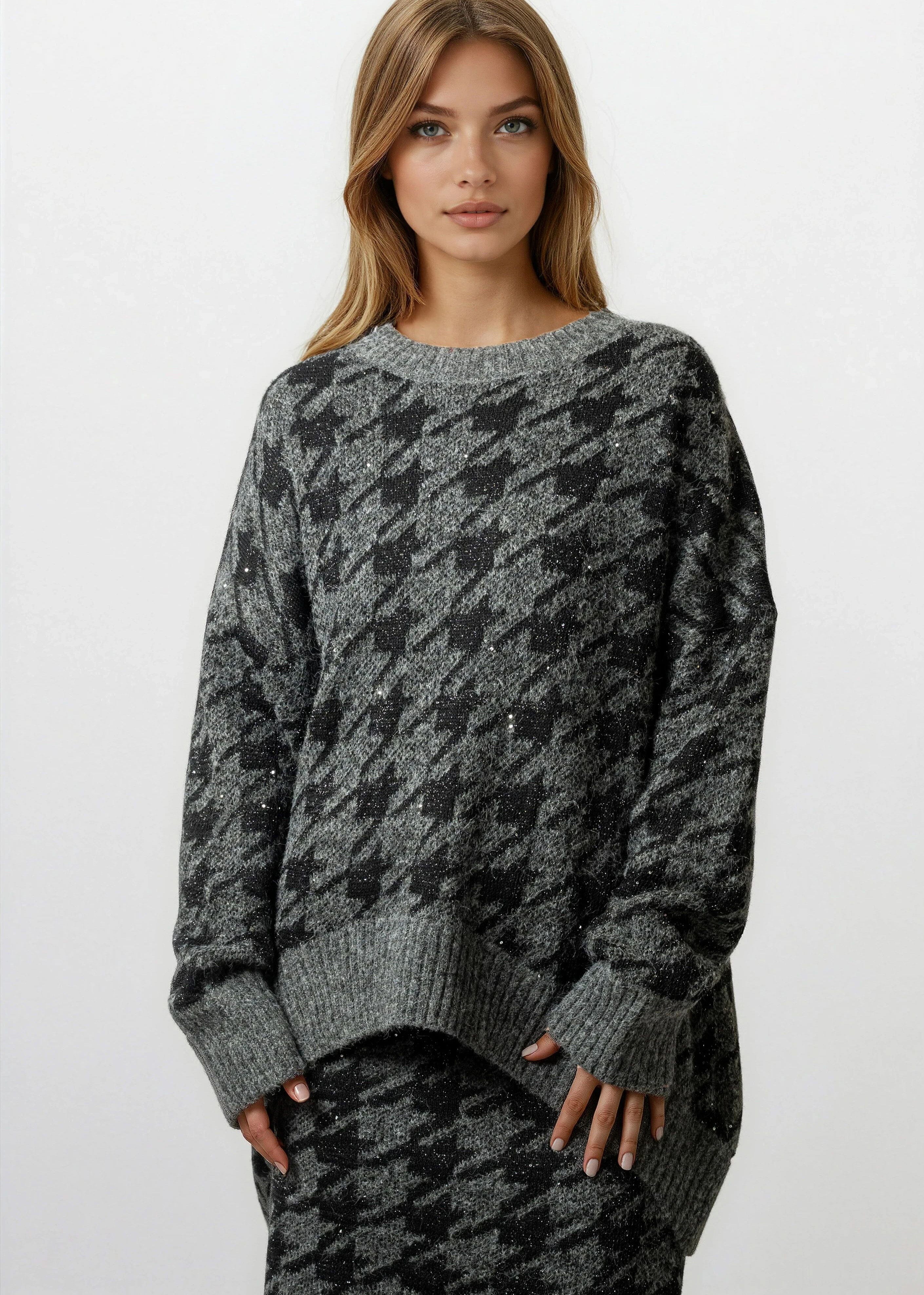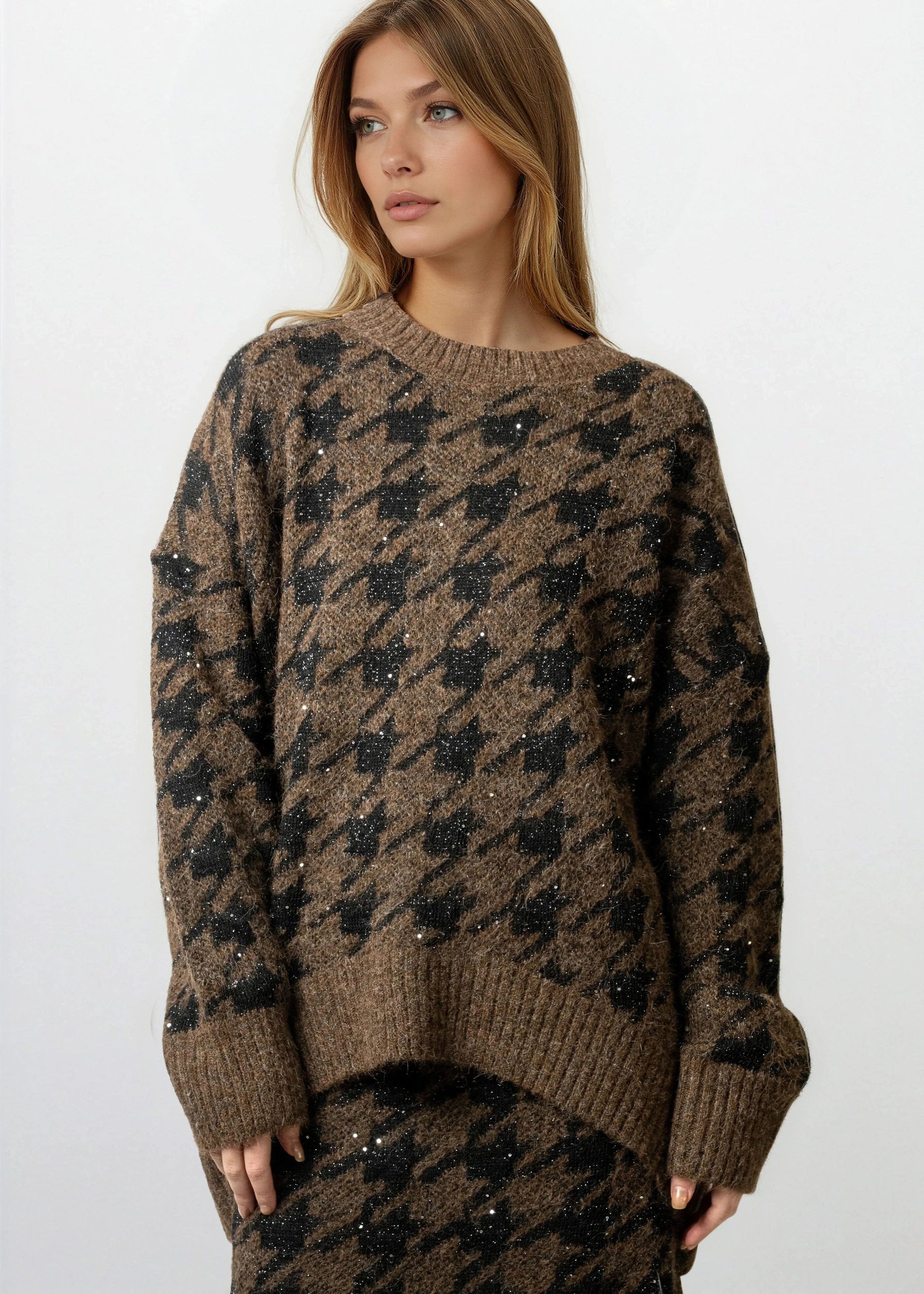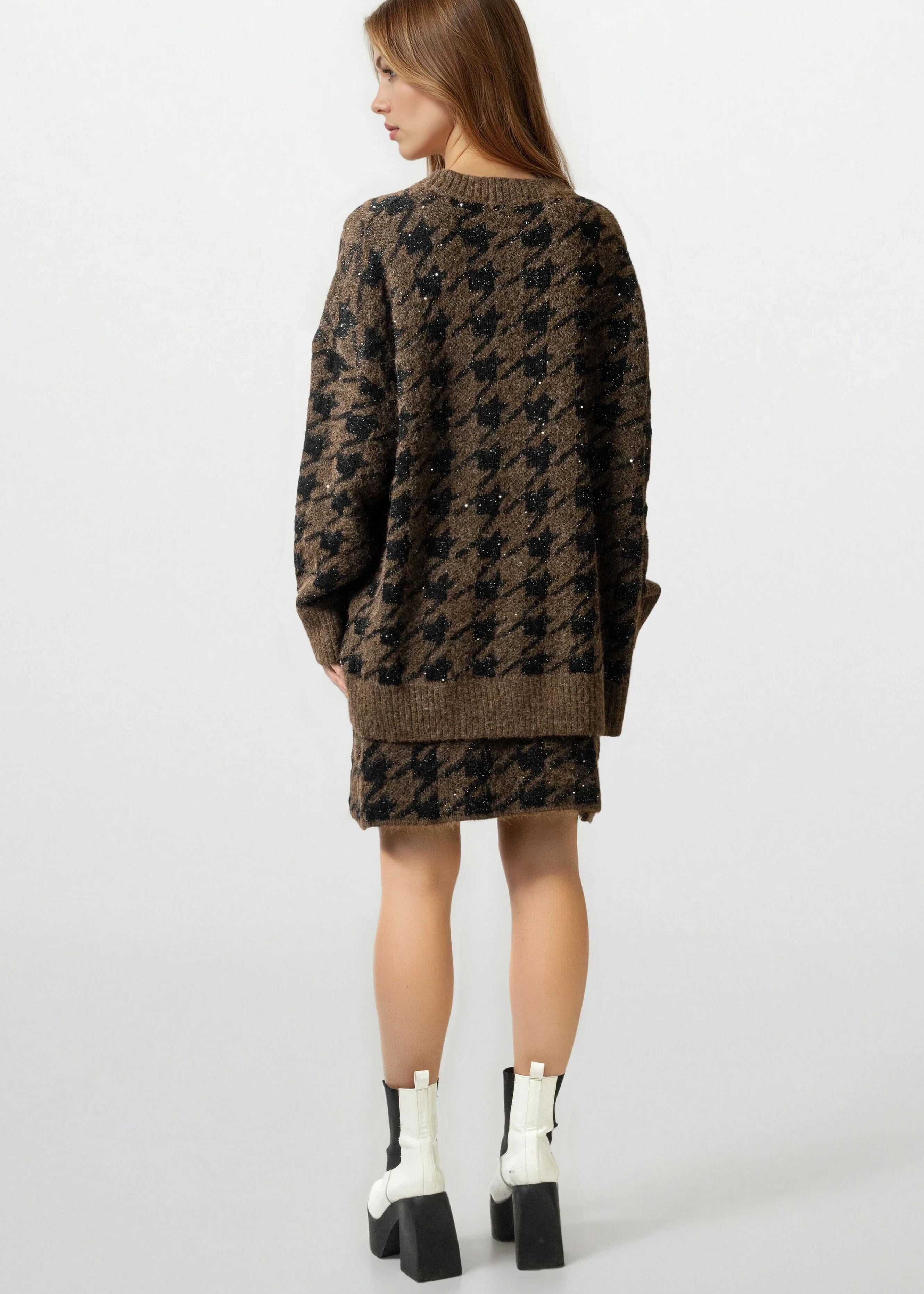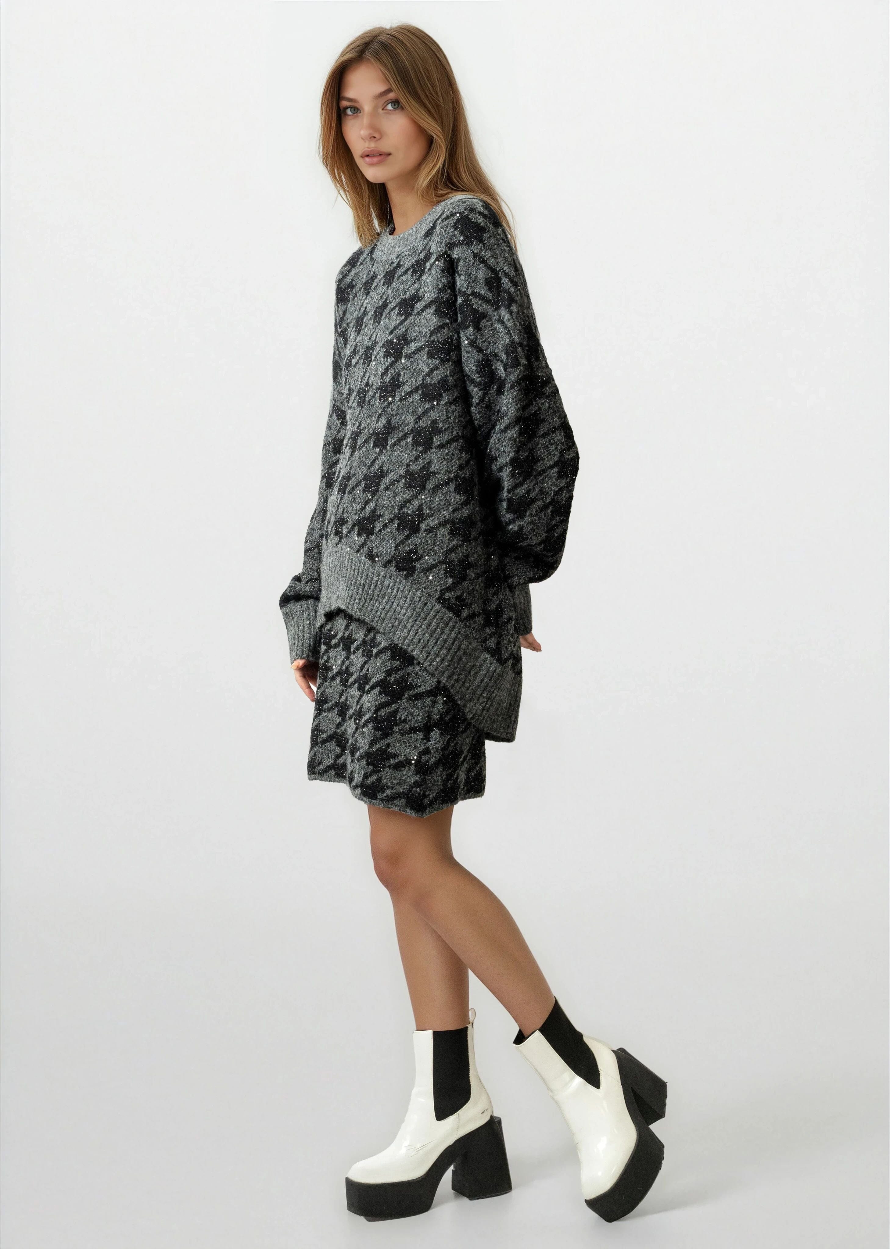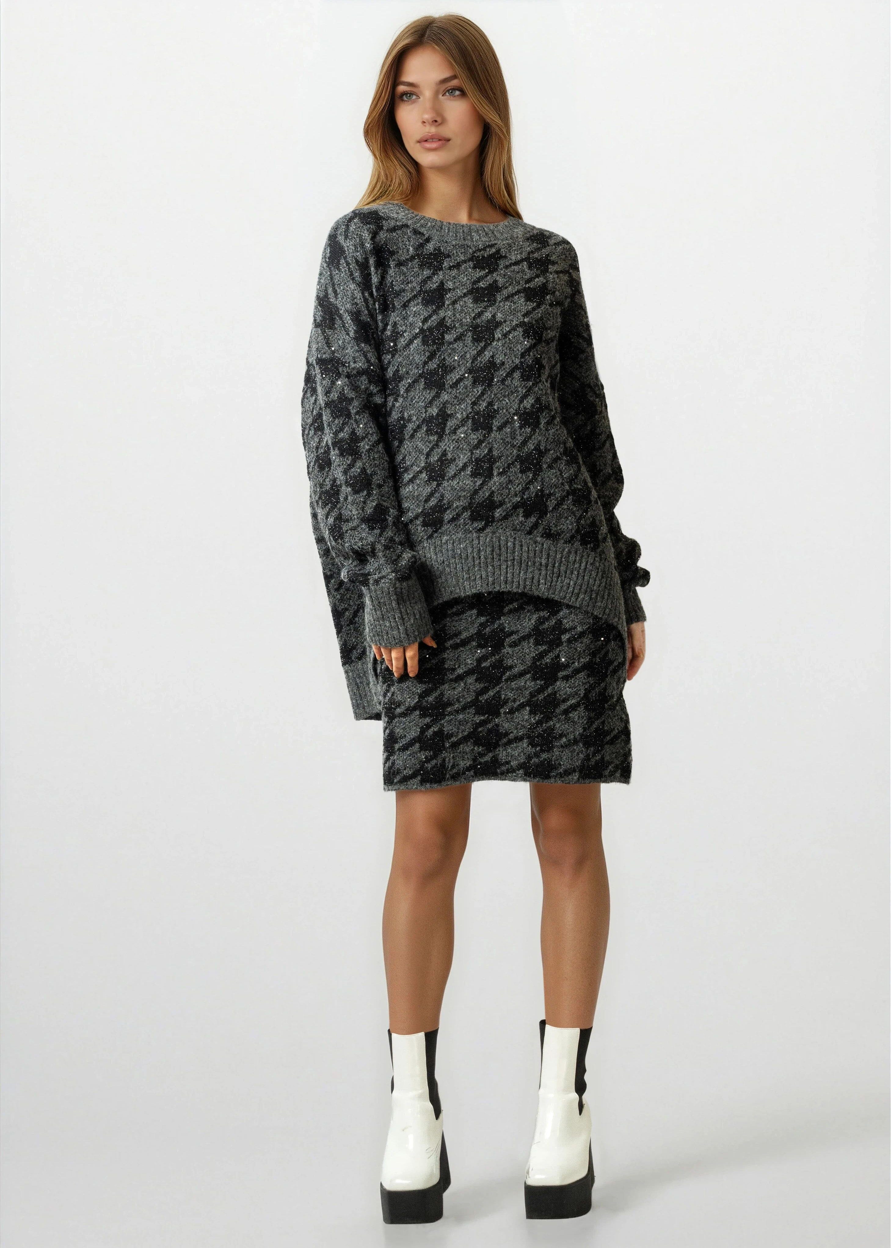 Houndstooth Knitted Skirt Set