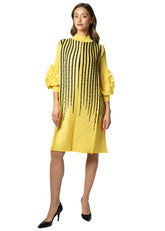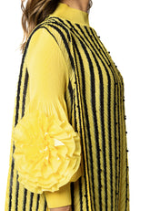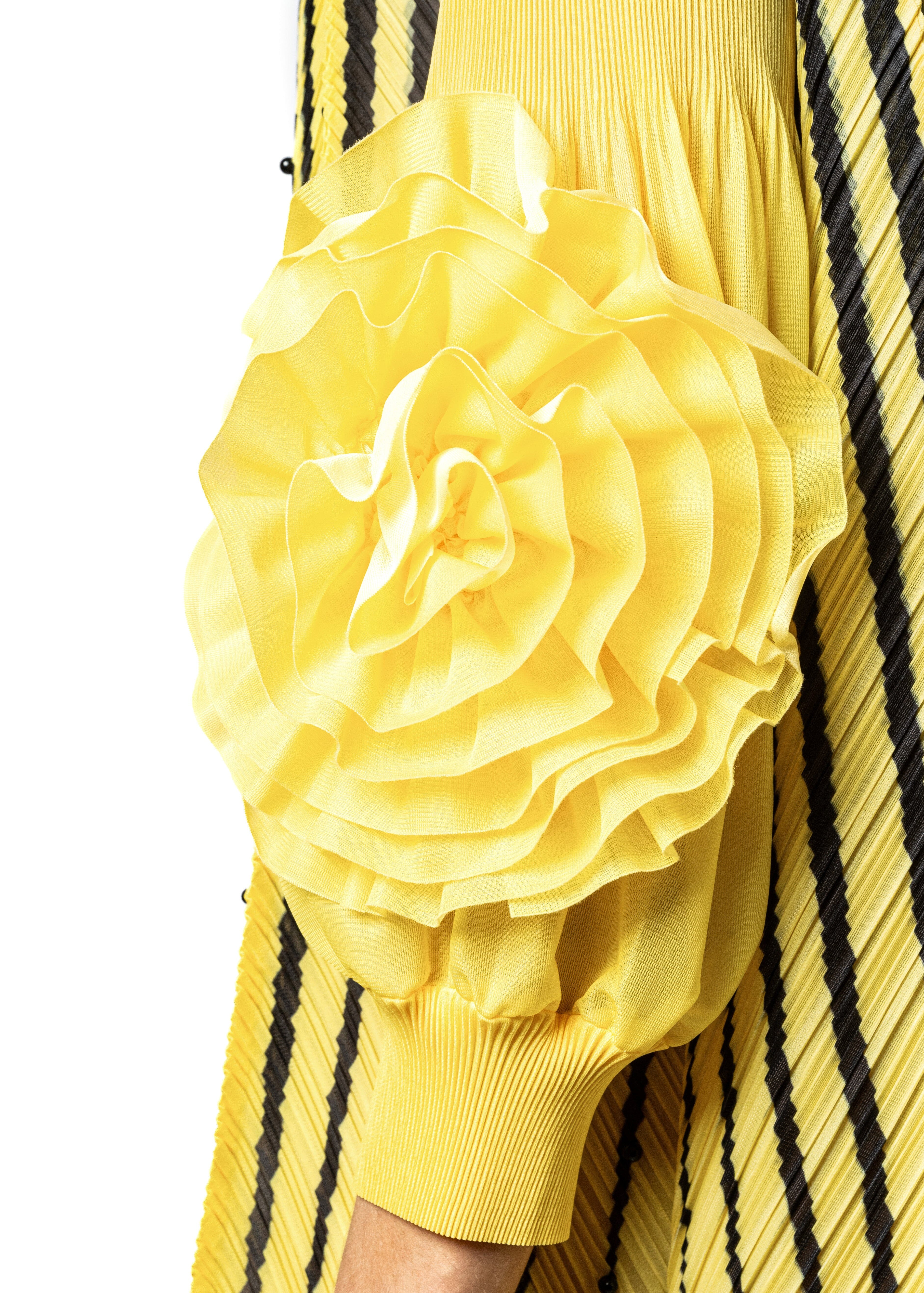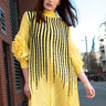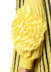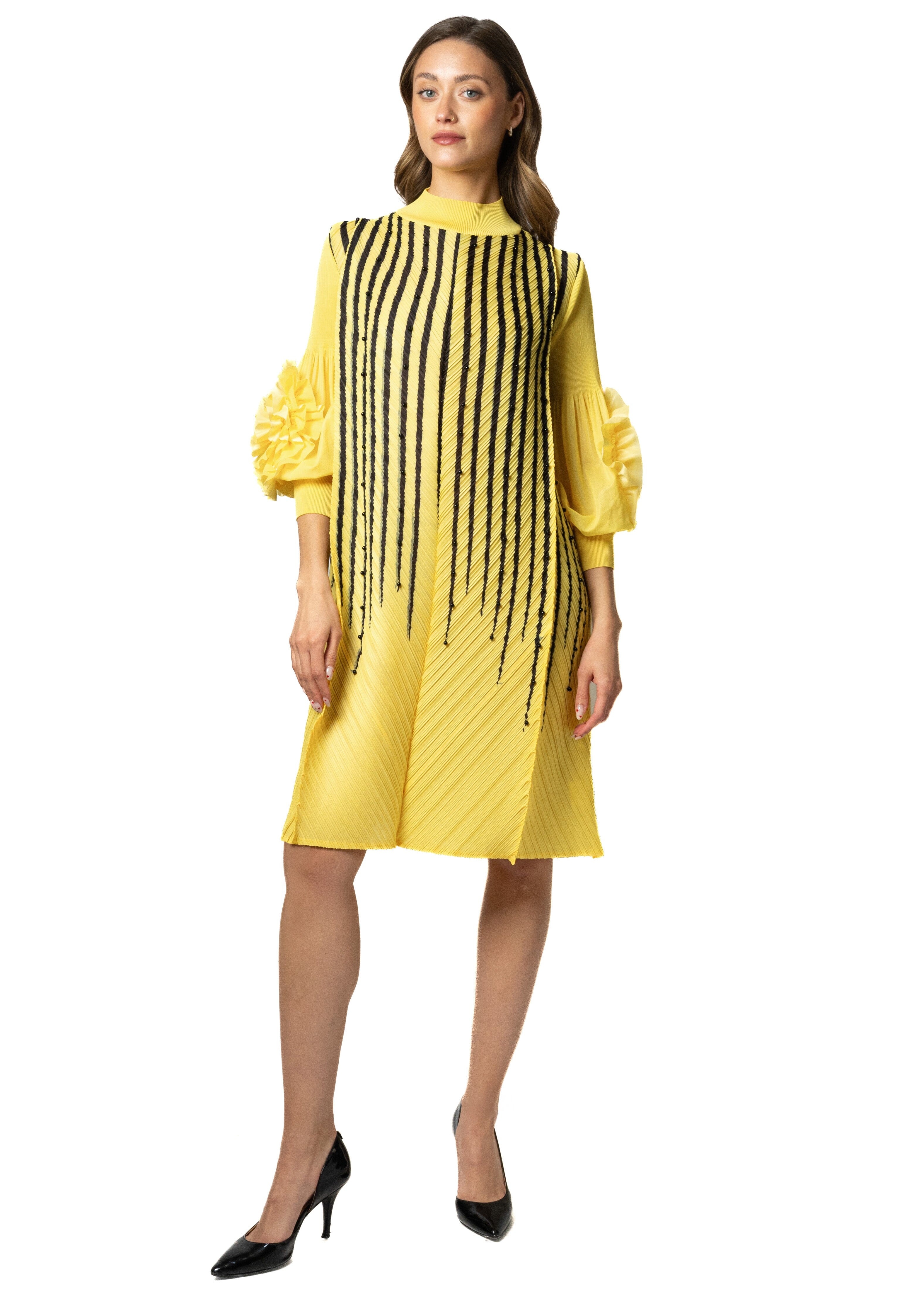 Pearl Striped Petal Sleeve Mock Neck Dress