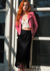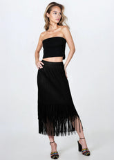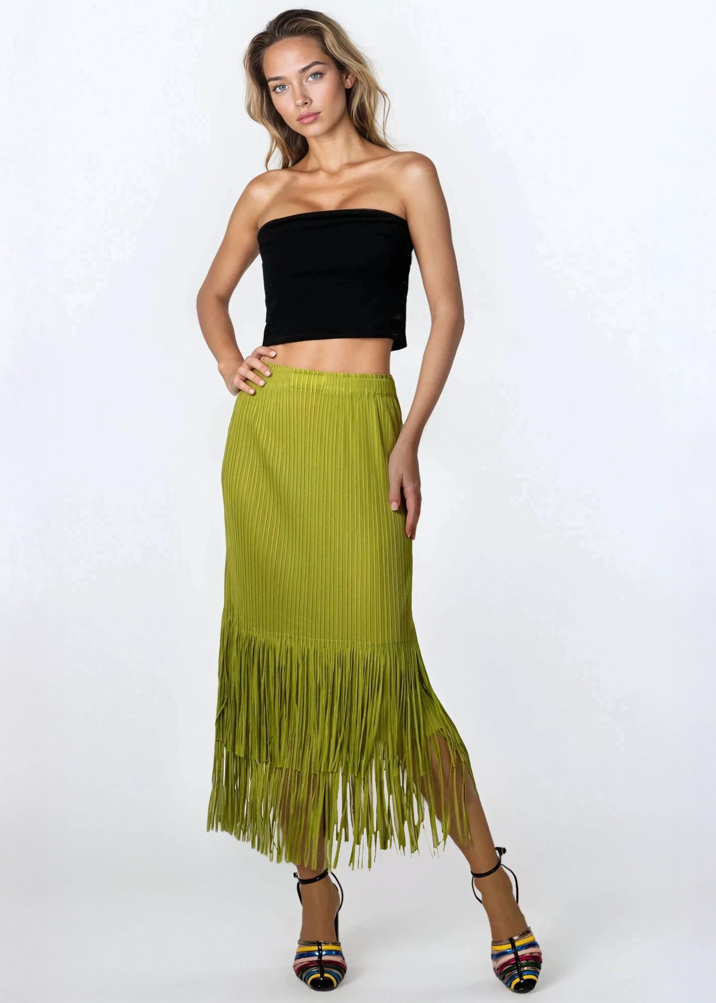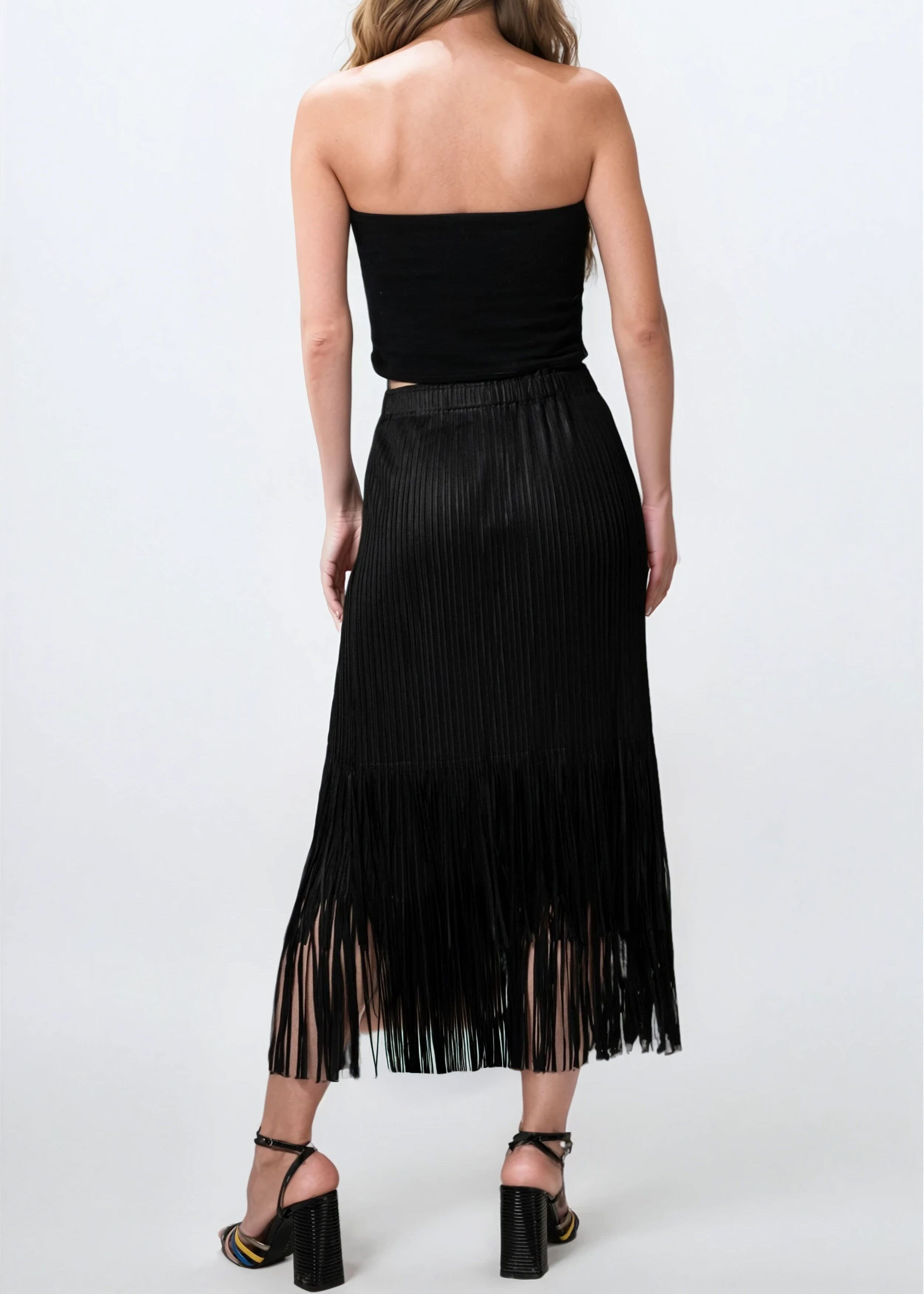 Pleated Tassel Hem Skirt