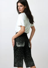 • Machine wash cold + hang to dry. If the item has sequins, rhinestones, pearls, or any other embellishments, put inside a mesh laundry bag for delicates.