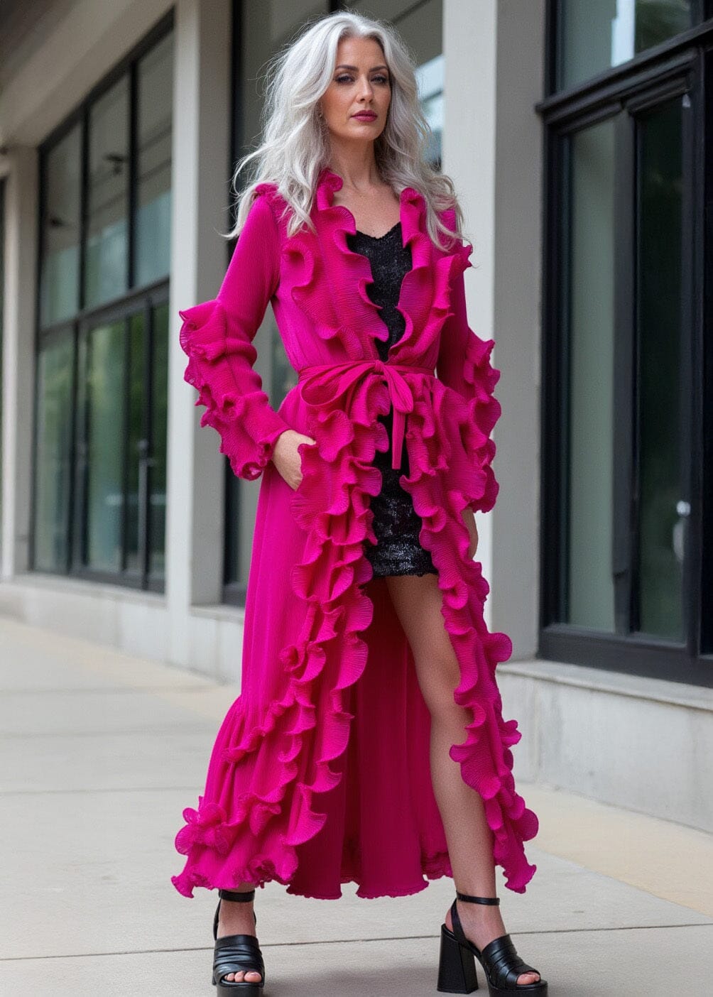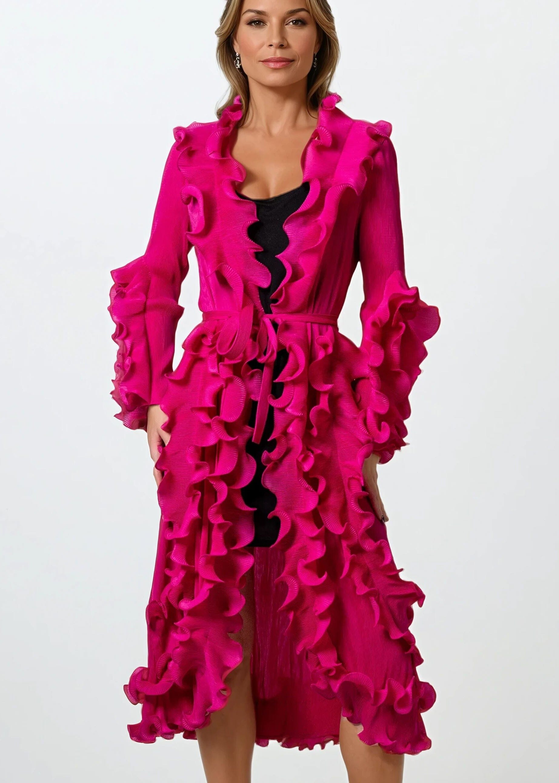 Ruffle Belted Glam Cardigan Cardigans Kate Hewko Black One size