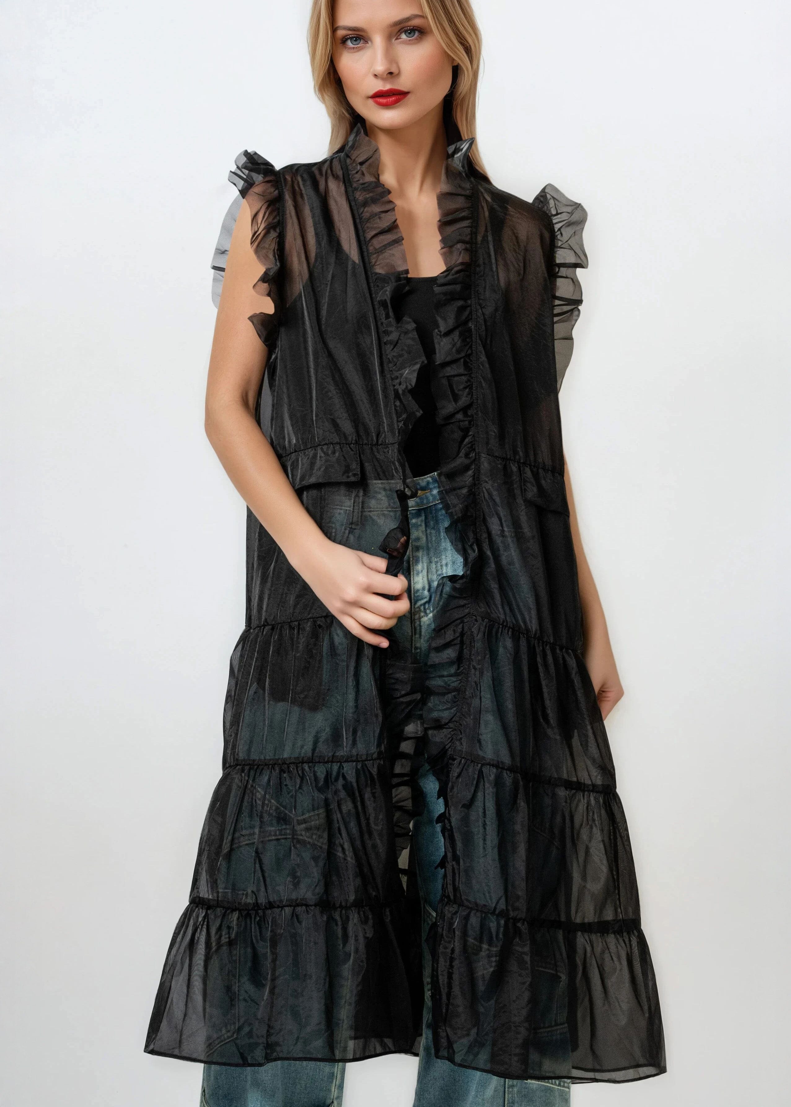 Sheer Ruffle Tulle Cardigan
