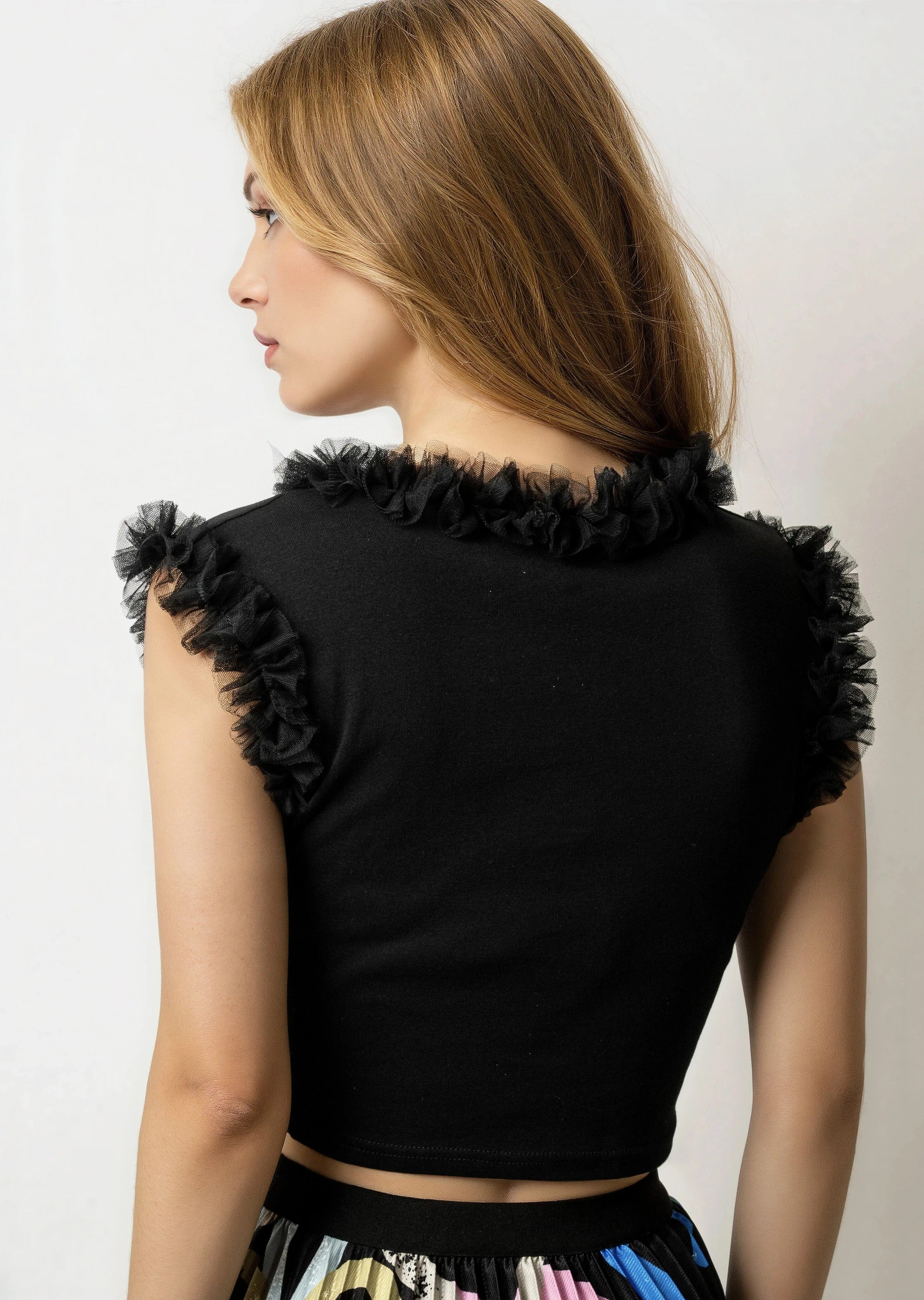 Tulle Trimmed Cropped Tank Top